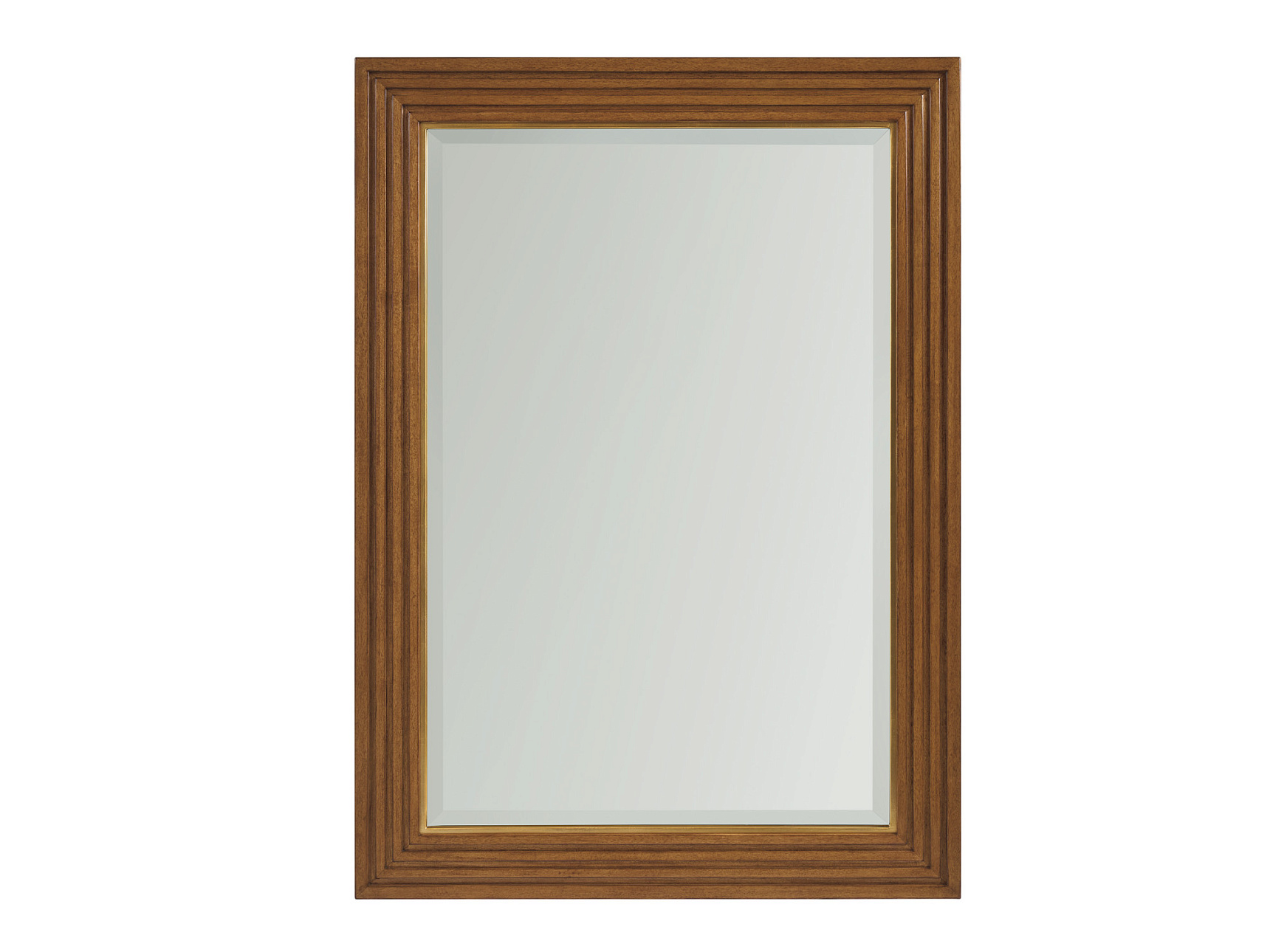 Зеркало Cassia из коллекции La Costa от премиального американского бренда Lexington имеет деревянную рифленую внешнюю раму, внутреннюю металлическую раму, отделанную сатинированным золотом, и скошенное зеркало.