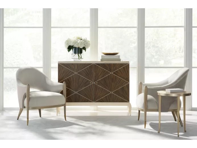 Комод I'M A Fan от премиального американского бренда Caracole изготавливается из березы и клена в отделке голуэй. Ножки в отделке слоновая кость. Столешница выполнена из мрамора. Комод с двумя дверцами.