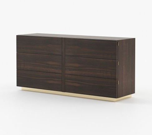 Комод Kira от премиального португальского бренда Laskasas изготавливается из дерева и металла. Модель с шестью выдвижными ящиками. Доступно большое количество вариантов материала и отделки.