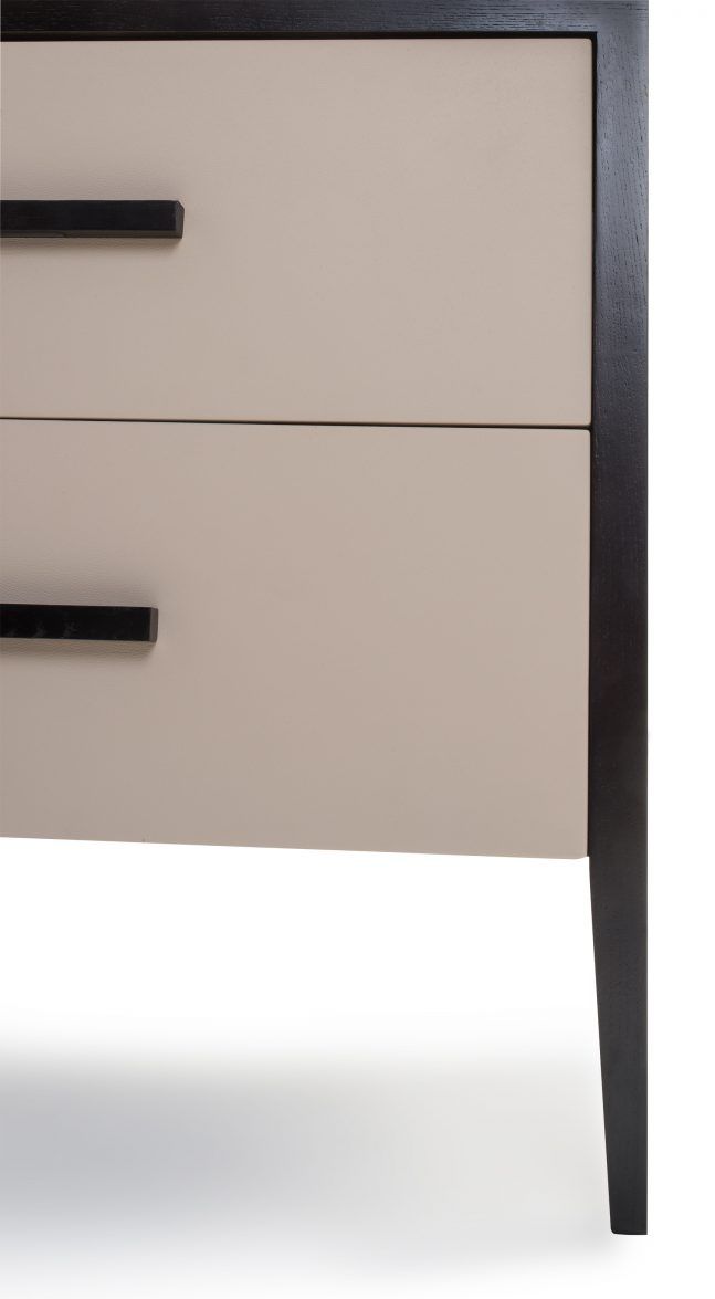 Комод LIZA от премиального Английского бренда LIANG AND EIMIL. Состоит из двух выдвижных ящиков. Каркас, ручки и ножки из массива древесины твердых пород оттенка венге. Верхняя поверхность корпуса с отделкой бежевой искусственной кожей.