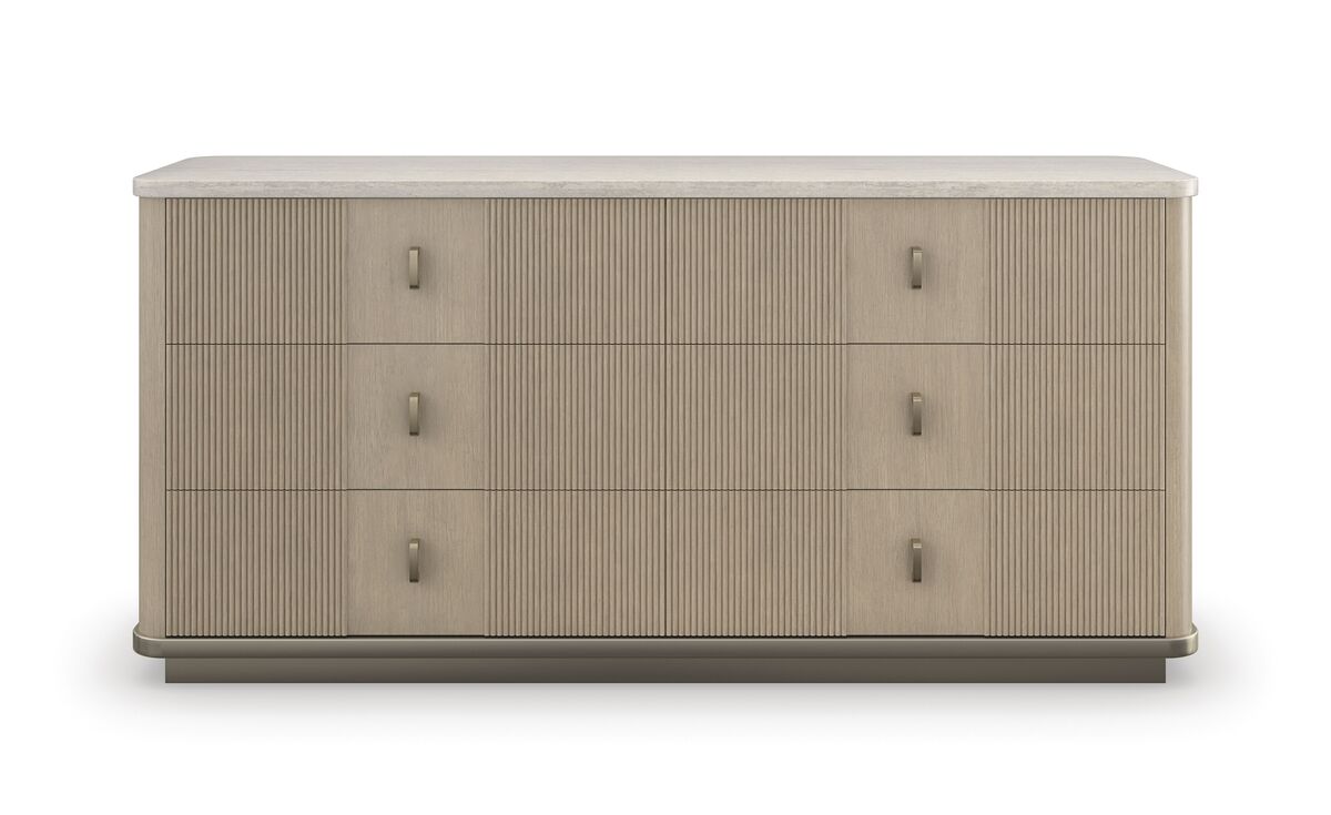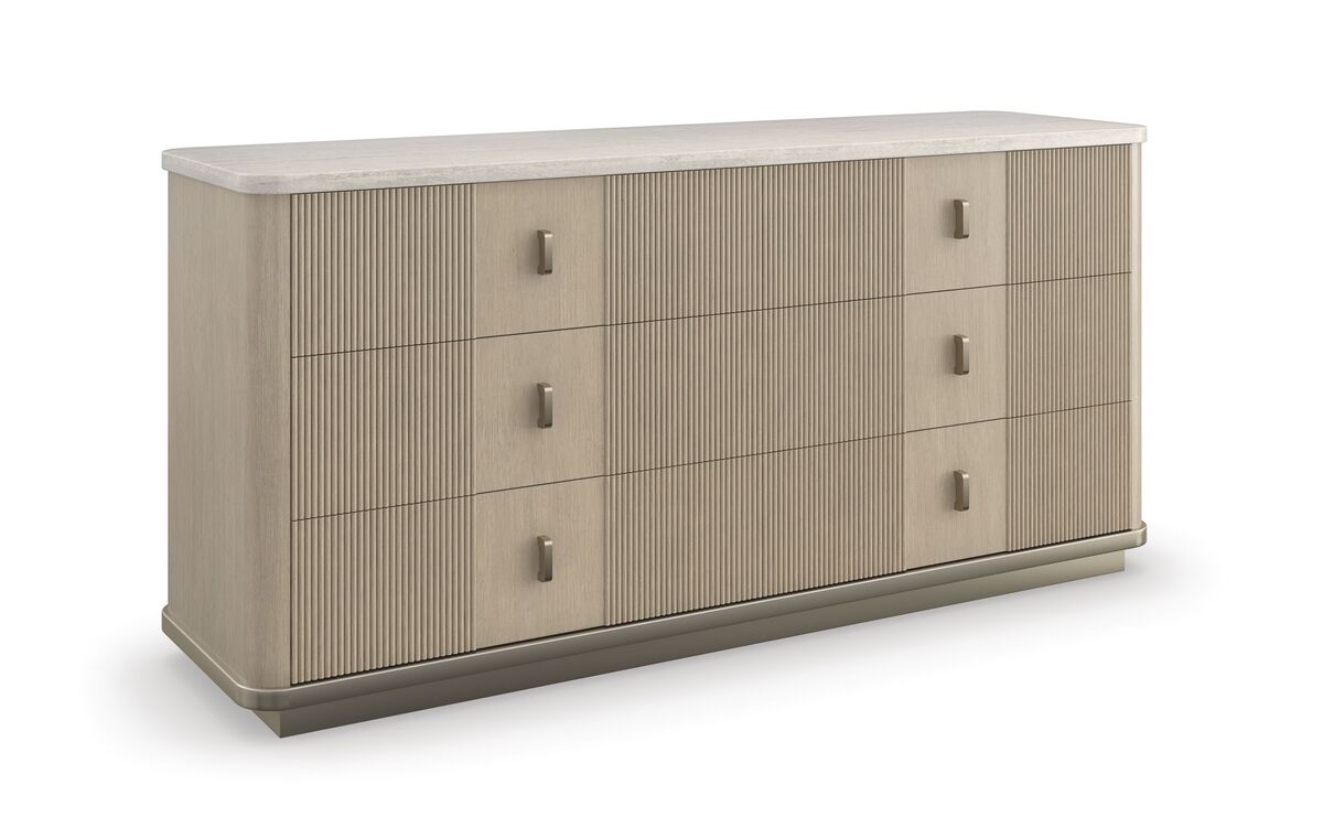 Комод Rhythm от премиального американского бренда Caracole изготавливается из азиатской твердой древесины, дуба из Квотерсауна и камня в отделке: залитый солнцем дуб, нейтральный металлик.