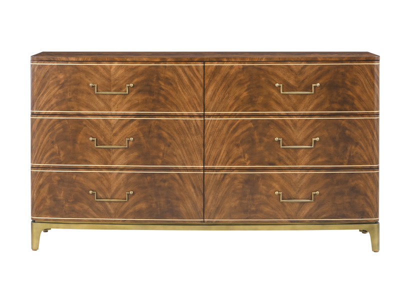 Комод Spencer London от американского премиального бренда Theodore Alexander изготавливается из массива дерева и шпона. Металлические элементы в латунной отделке.