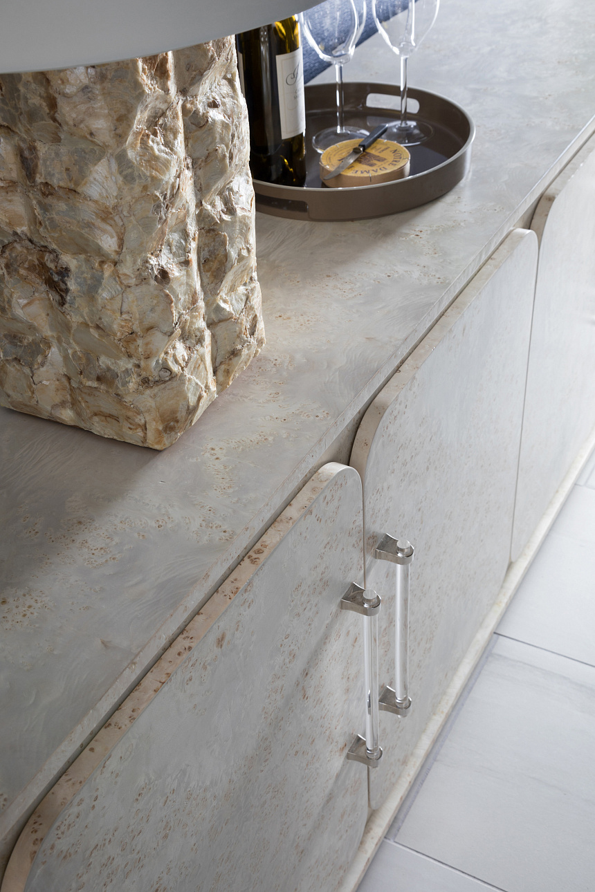 Медиа-консоль Baronet из коллекции Signature Designs от премиального американского бренда Artistica Home для Lexington. Модель из выбеленного натурального шпона маппы, покрытого простым бесцветным лаком. Отделка Baronet из шпона маппы была разработана таким образом, чтобы имитировать состаренную древесину, и цвет каждого изделия может отличаться. Длинные дверные ручки из акрила и никеля, две регулируемые полки за каждой парой дверей с функцией плавного закрывания, вентилируемые/съемные задние панели.