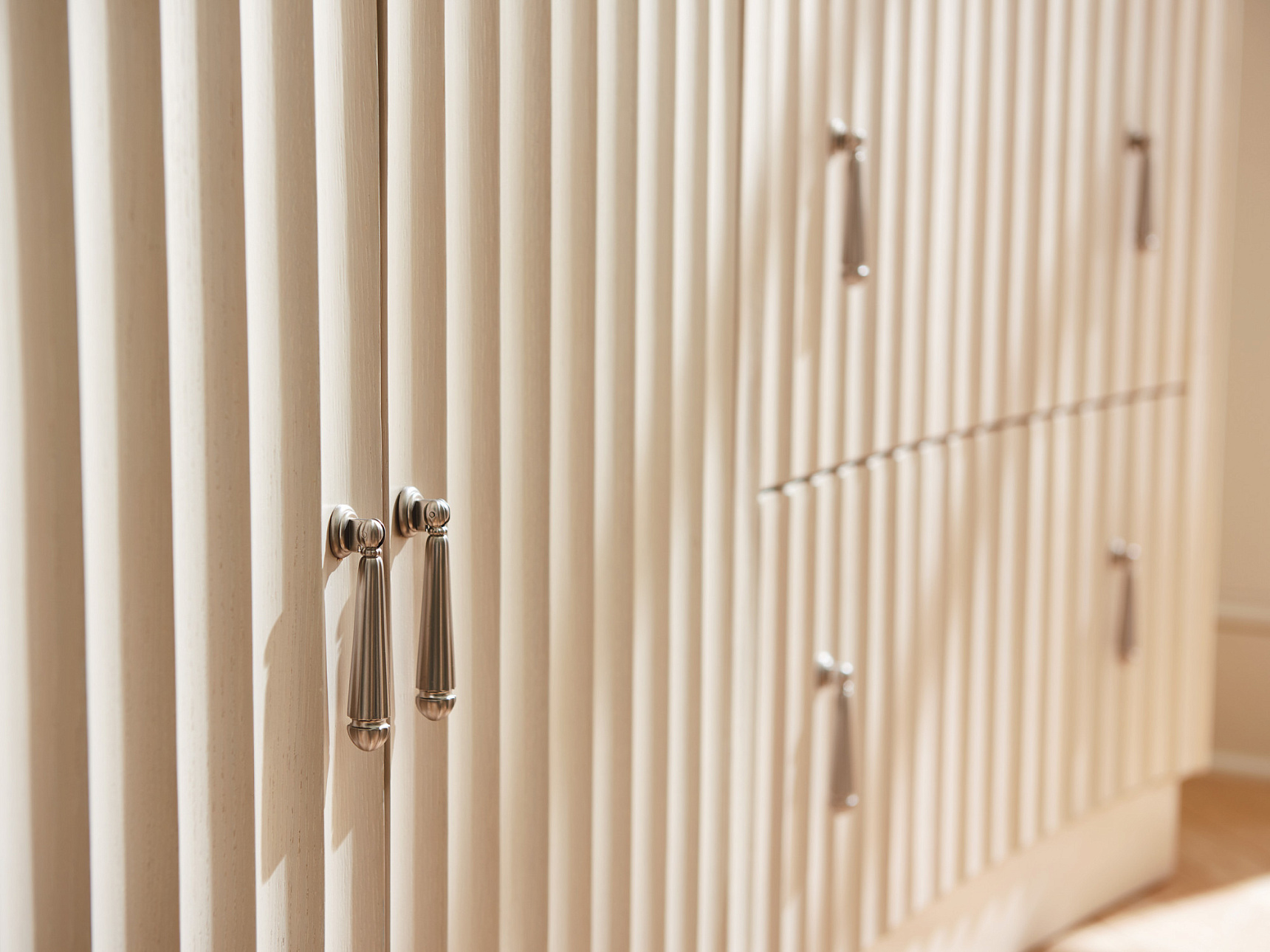 Тумба под ТВ Ellerston от американского премиального бренда Lexington имеет элегантный дизайн с четырьмя дверцами, украшенными фестонами. За дверцами находятся шесть выдвижных ящиков и шесть регулируемых полок.