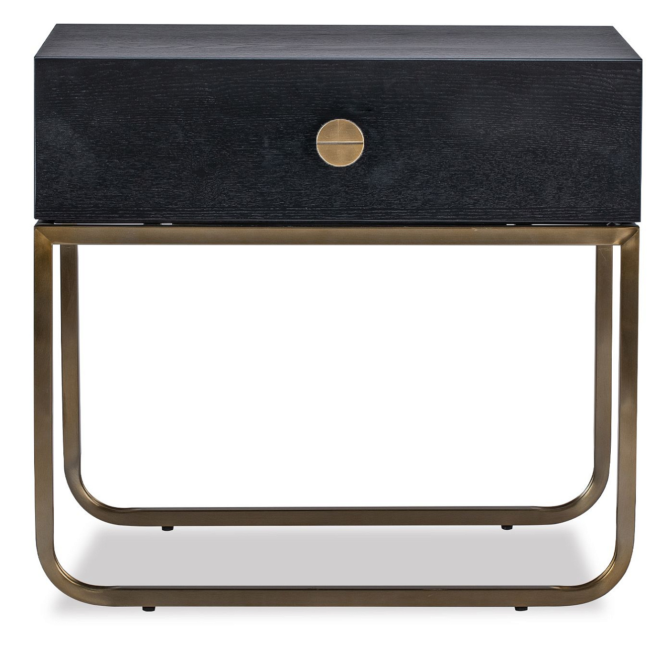 Прикроватный столик RHAPSODY от премиального Английского бренда LIANG AND EIMIL. Основание металлическое оттенка латуни, поверхность шлифованная. Верхняя часть деревянная, оформлена черным шпоном ясеня. Конструкция оснащена одним выдвижным ящиком с металлической фурнитурой в цвет основания.