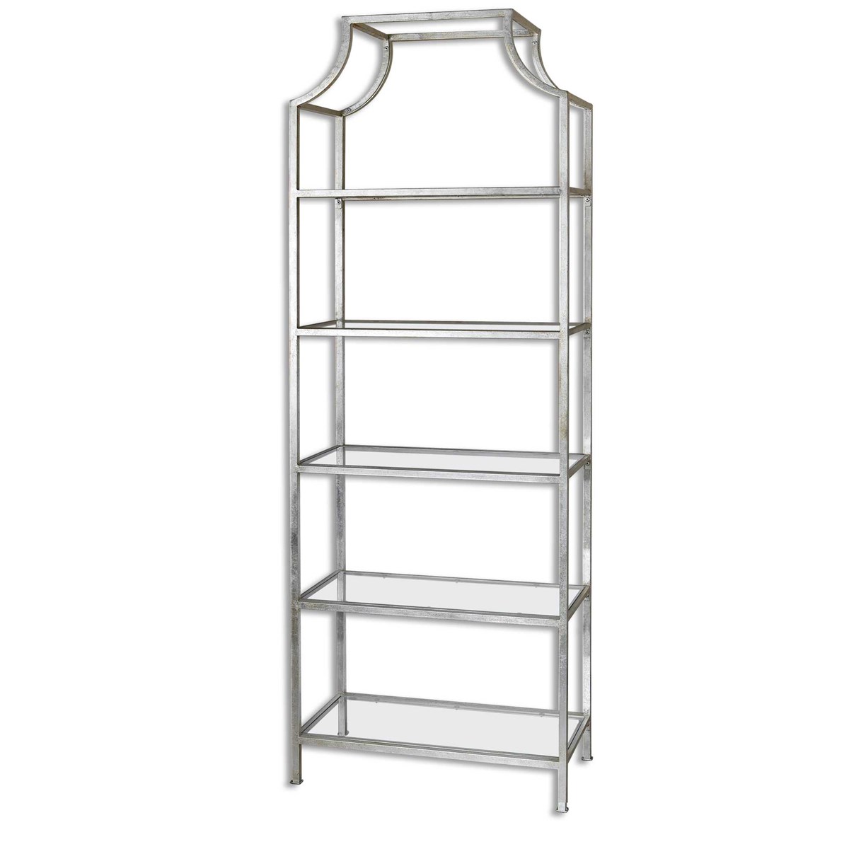 Стеллаж Aurelie от американского премиального бренда Uttermost из посеребренного металла с полками из закаленного стекла.
