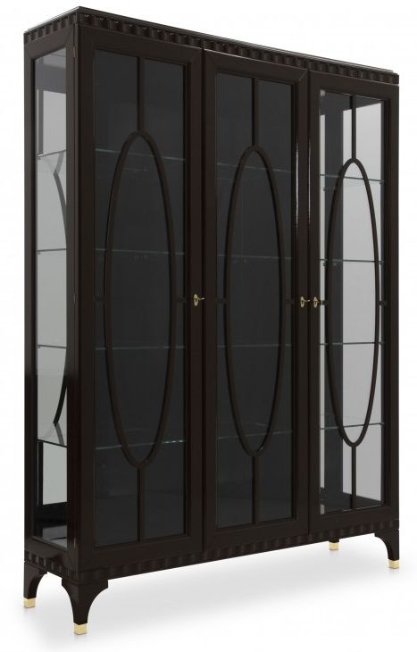 Витрина ELLIPSE от премиального итальянского бренда SEVENSEDIE. Выполнена в современном стиле. Конструкция из трех дверей с ручкой кноб, стеклянных полок и боковых стеклянных панелей, через которые проходит больше света. Фурнитура доступна в двух оттенках: золото, хром. Корпус из древесины вишни. На выбор предлагается обработка в одном из 8 вариантов тонировки. Поверхность полированная. Металлические наконечники на ножки в одном из оттенков: золото, бронза, хром, серый. Дополнительно можно заказать подсветку и оформление задней стенки зеркалом.