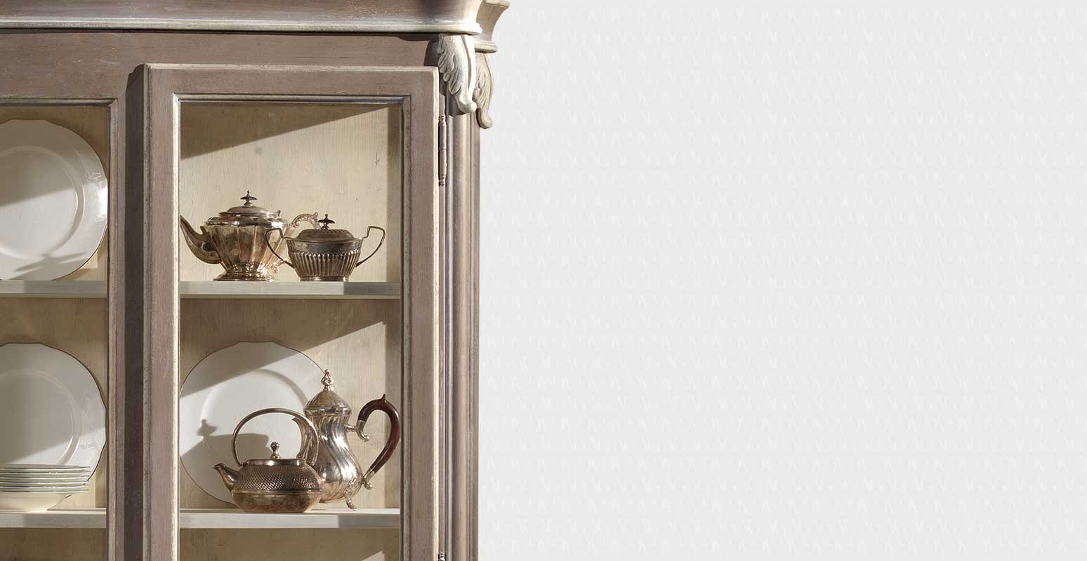 Витрина для посуды от премиального итальянского бренда Vittorio Grifoni. Конструкция состоит из двух отделений с распашными дверями, закрывающимися на ключ. Внутри деревянные полочки. На фото финиш Loft. На выбор предлагается 4 класса сочетаний цветов и текстур и несколько вариантов декоративной обработки корпуса.