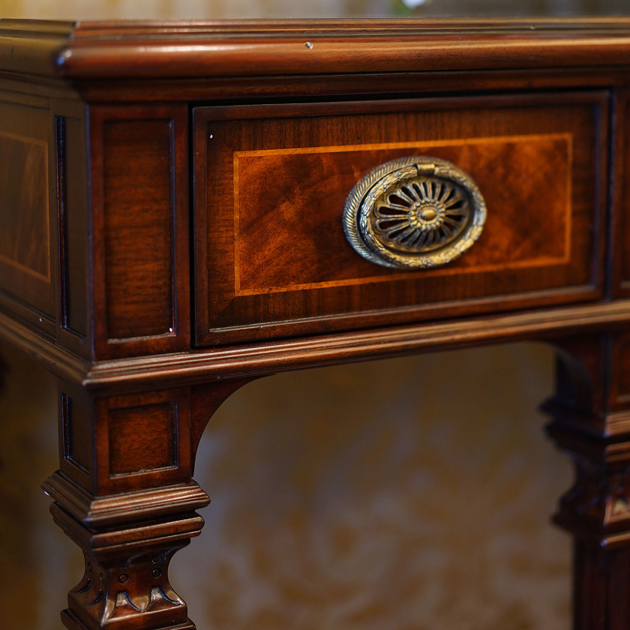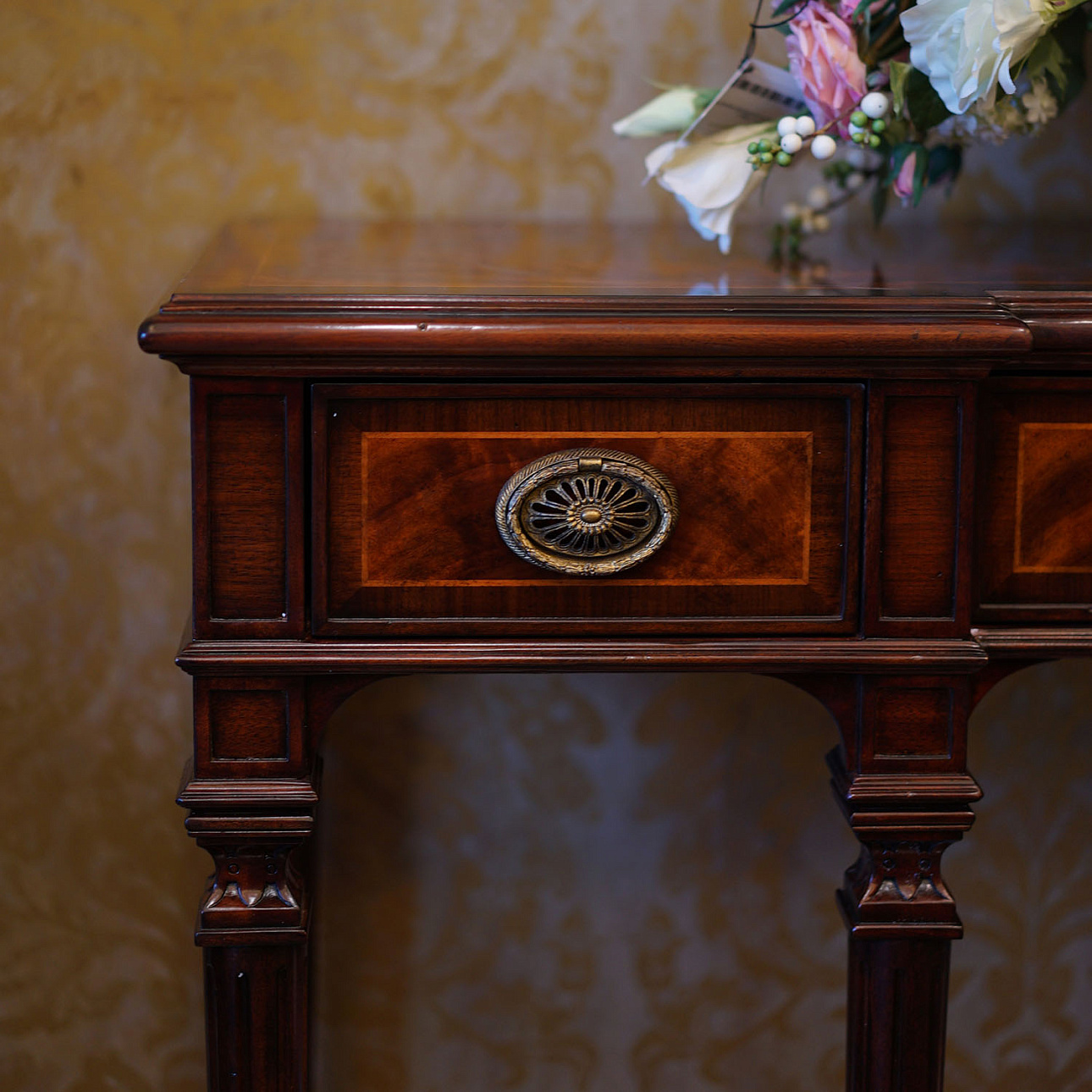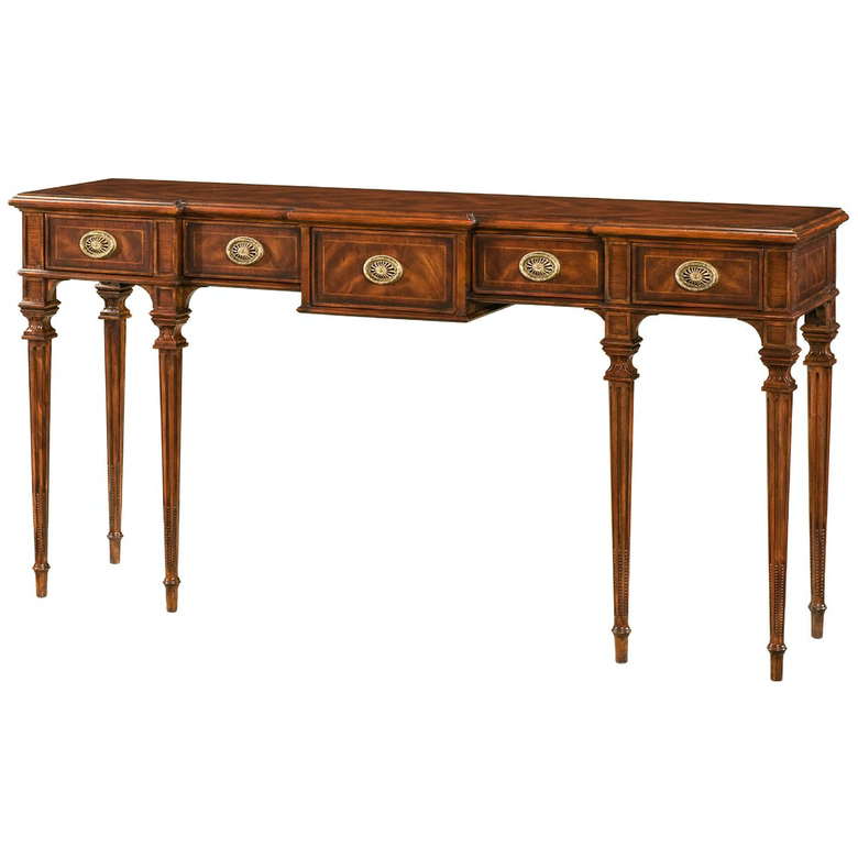 Роскошная консоль Knightley от американского премиального бренда Theodore Alexander изготавливается из красного дерева и металла в латунной отделке.