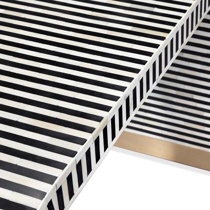 Стол-консоль Beacon от премиального американского бренда Interlude Home изготавливается из смолы, кости и латуни. Все костяные плитки укладываются вручную мастерами, что обеспечивает почти гладкую поверхность. Изделия совершенно неидеальны, возможны небольшие вмятины, швы, неровные края и естественное изменение цвета. Все недостатки добавляют неповторимого очарования каждому изделию.