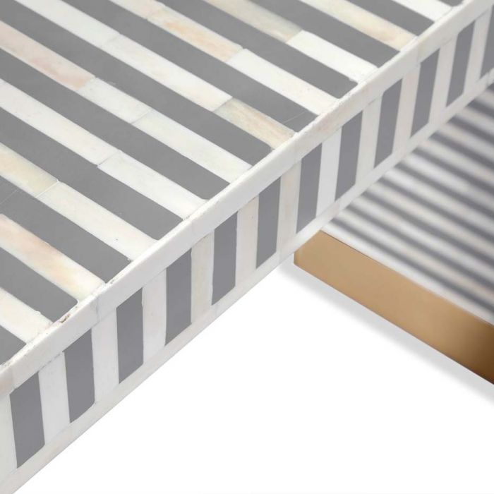 Стол-консоль Beacon от премиального американского бренда Interlude Home изготавливается из смолы, кости и латуни. Все костяные плитки укладываются вручную мастерами, что обеспечивает почти гладкую поверхность. Изделия совершенно неидеальны, возможны небольшие вмятины, швы, неровные края и естественное изменение цвета. Все недостатки добавляют неповторимого очарования каждому изделию.
