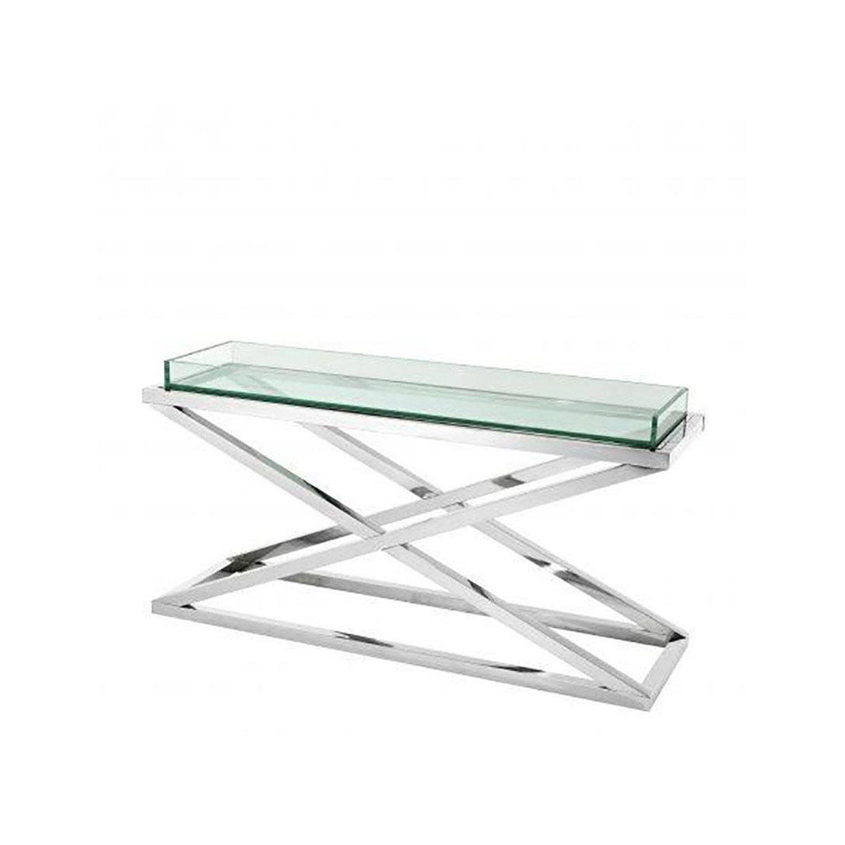 Стол-консоль Curtis от премиального голландского бренда Eichholtz с перекрещенными ножками из полированной нержавеющей стали и толстой стеклянной столешницей легко послужит и придиванным столиком, делая интерьер гостиной, спальни или прихожей более современным. Эта роскошная консоль, разработанная дизайнерами производителя элитной мебели Eichholtz, доступна в различных цветовых решениях и с разными финишными покрытиями.