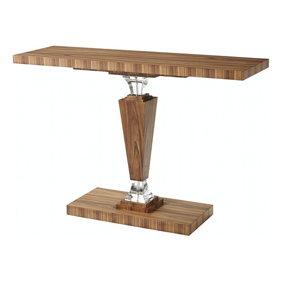 Консоль Optical Illusion от американского премиального бренда Theodore Alexander изготавливается из массива дерева и отделывается шпоном. Ножка украшена прозрачным стеклом.