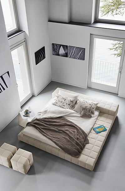 Кровать Squaring от премиального итальянского бренда Bonaldo. Основание и ножки выполняются из дерева. Для обивки применяется ткань, натуральная кожа или экокожа различных цветов и состава. Обивка кровати полностью съёмная. Модель предлагается в нескольких вариантах, различающихся размерами. Матрас и основание с ламелями не входят в комплект поставки.