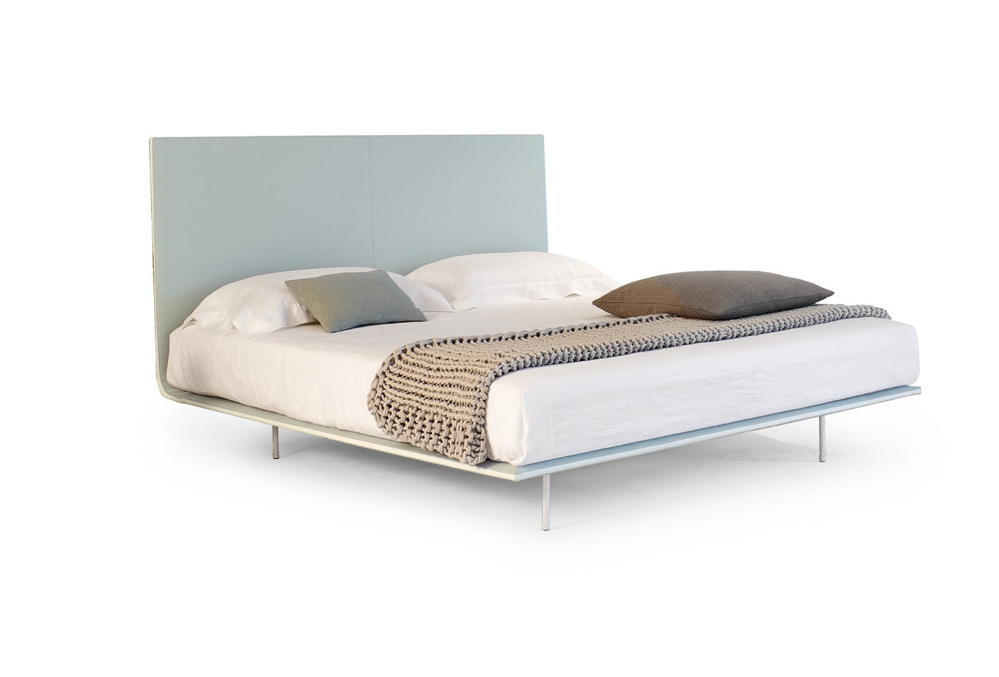 Кровать Thin от премиального итальянского бренда Bonaldo. Основание и ножки выполняются из металла. Для обивки применяется ткань, натуральная кожа или экокожа различных цветов и состава. Обивка кровати полностью съёмная. Модель предлагается в нескольких вариантах, различающихся размерами. Матрас не входит в комплект поставки.