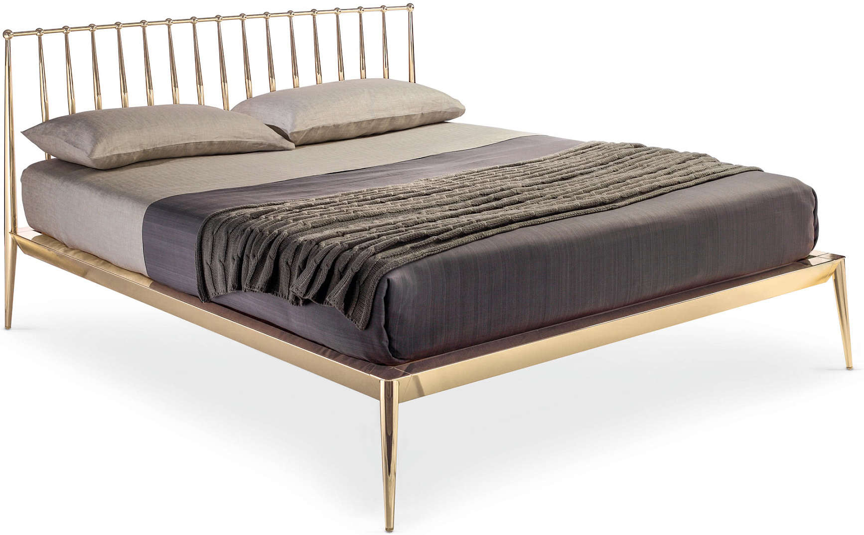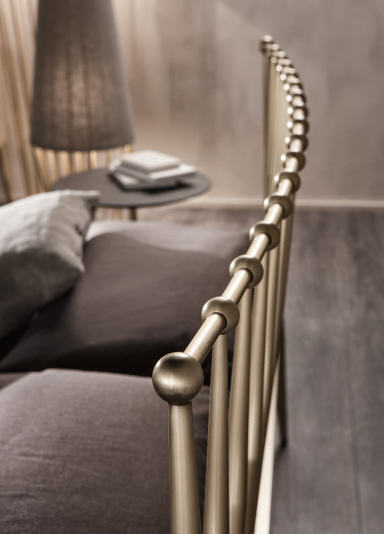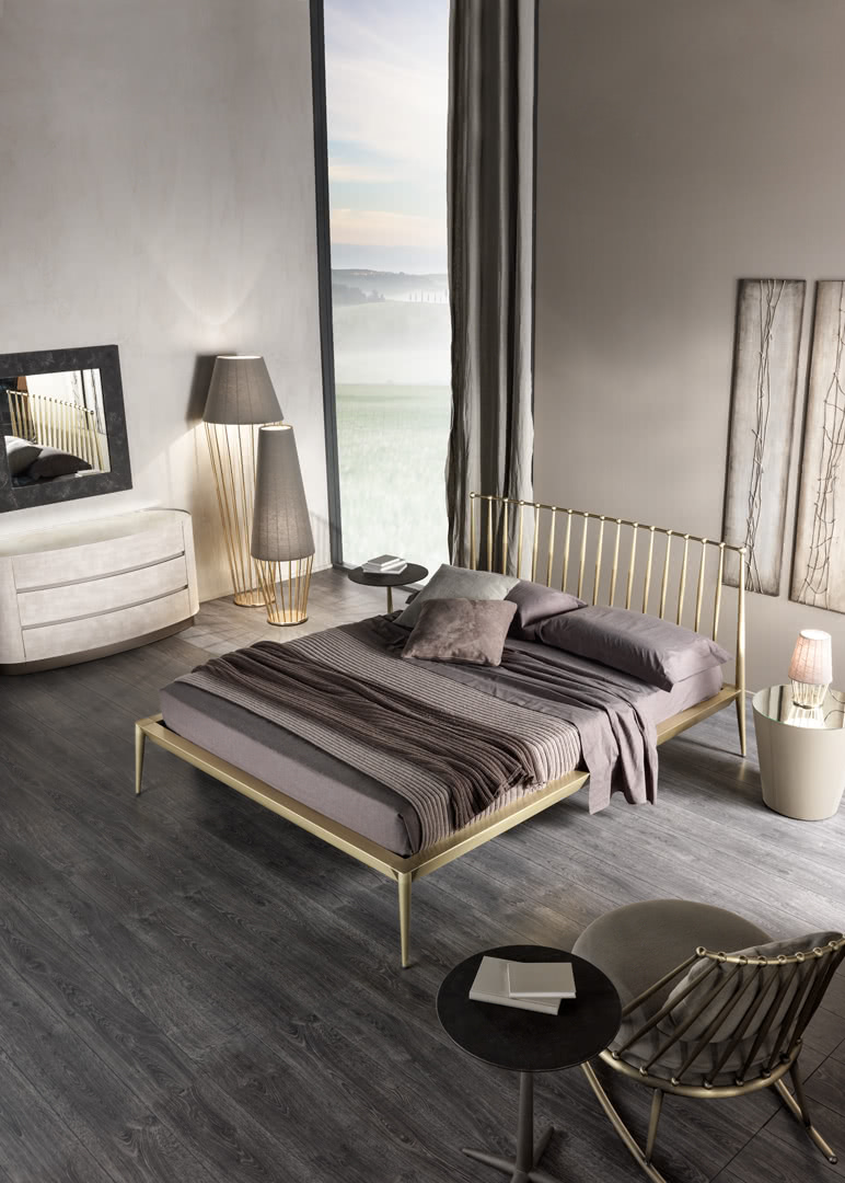 Кровать URBINO от премиального итальянского бренда Cantori. Модель предлагается в двух размерах спального места: 160х200, 180х200 см. Выполнена в современном дизайне. Изголовье в виде металлической рамы с вертикальными стержнями. Основание и конусообразные ножки - металлические. Конструкция состоит из каркаса и изголовья, которые включены в стоимость. Для производства можно выбрать цвет металлических деталей и размер спального места.