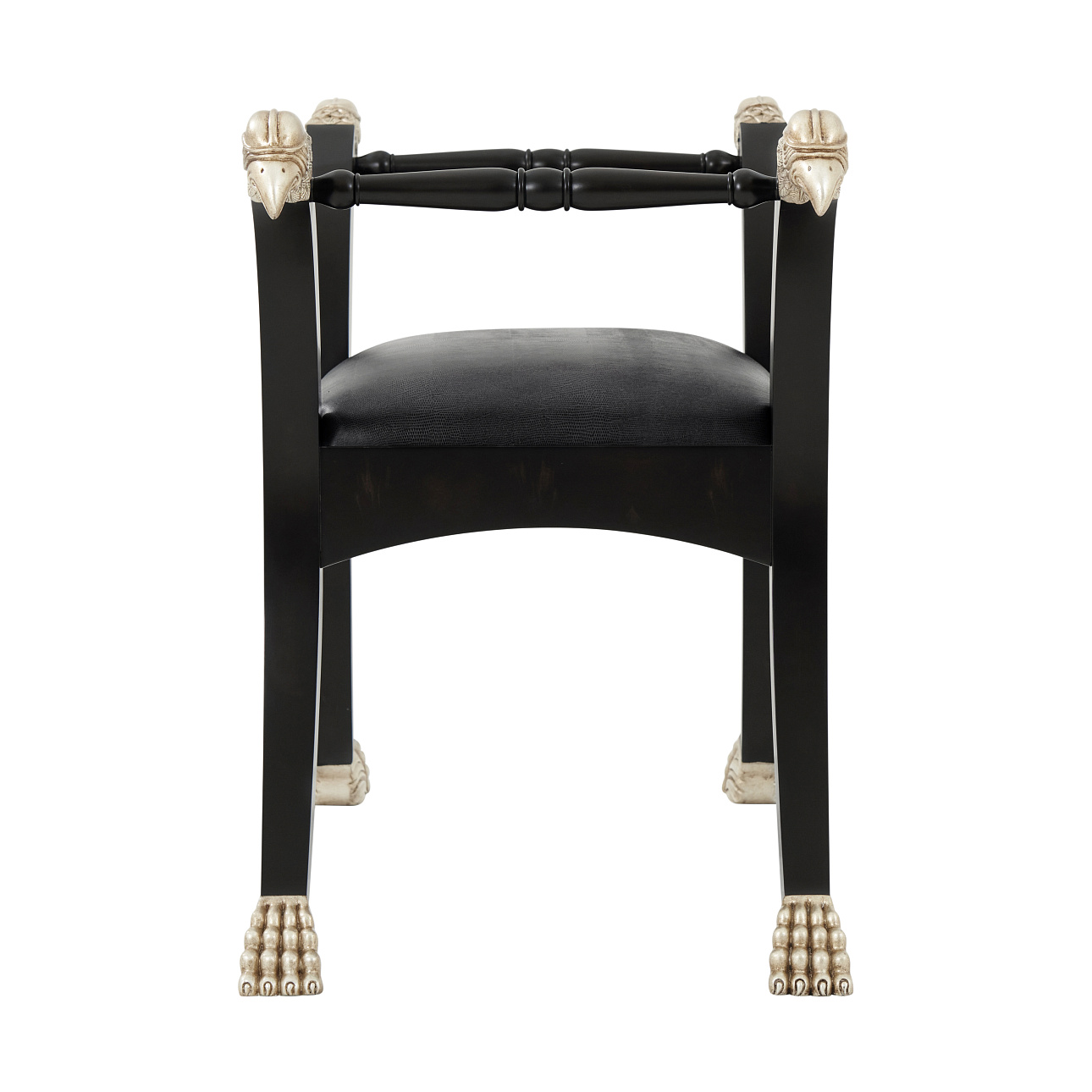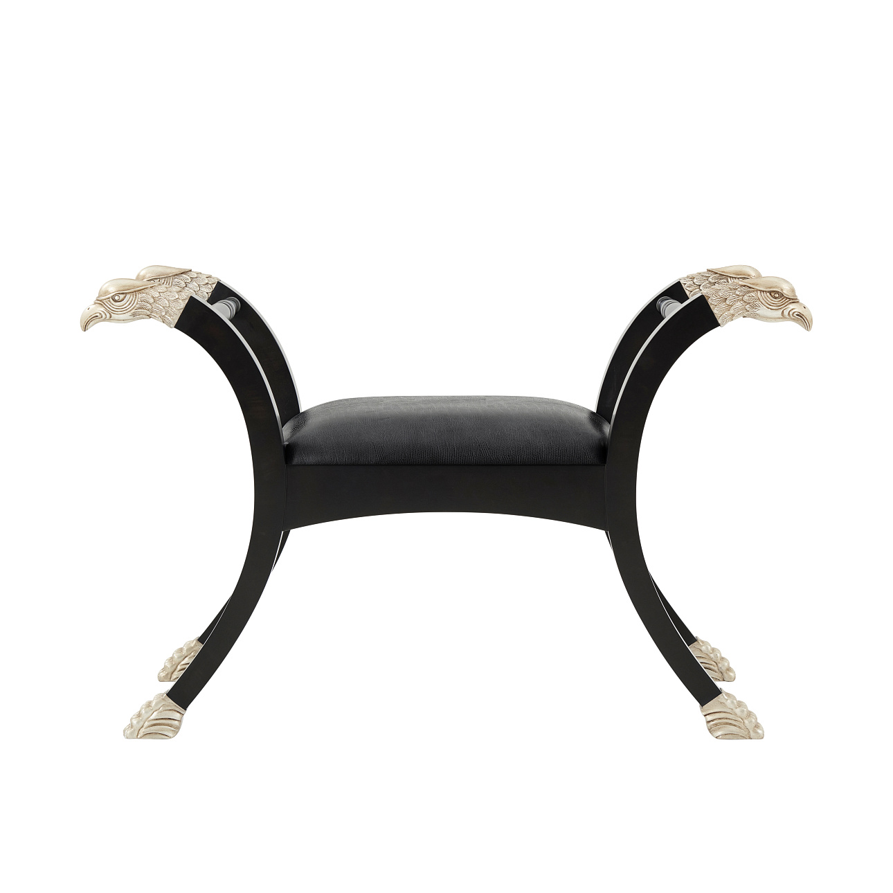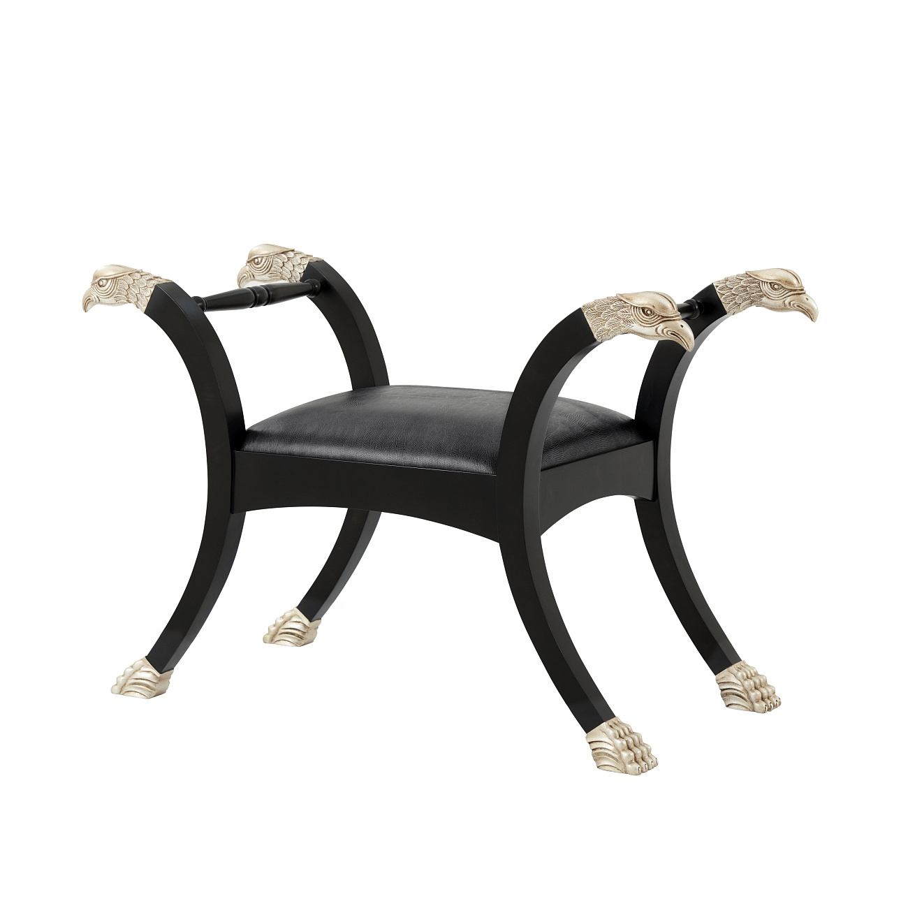 Банкетка Spencer London от американского премиального бренда Theodore Alexander изготавливается из дерева махагони и металла. Сидение обивается тканью. В качестве декора используются головы и когти птицы.
