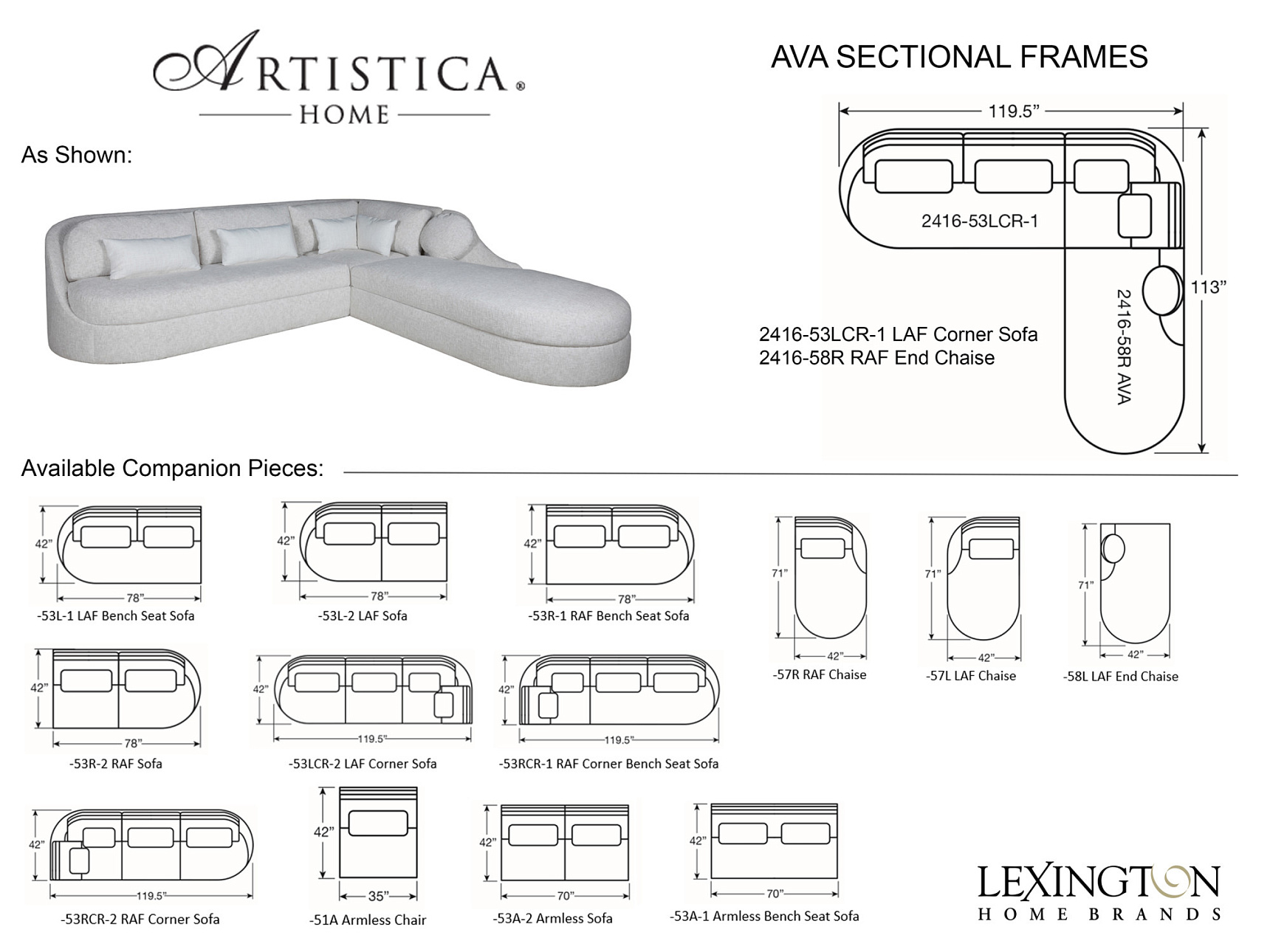 Модульный диван Ava из коллекции Artistica Upholstery от премиального американского бренда Artistica Home для Lexington. Асимметричные подушки спинки дополнены стандартными подушками-валиками для дополнительного комфорта и визуального объема. Каркас отличается изящным сужением и формированием как внутренних, так и внешних элементов, которые сходятся почти острым углом вокруг верхних направляющих, обрамляющих детали. Благодаря модулям и составным частям, диван можно комбинировать на любой вкус.