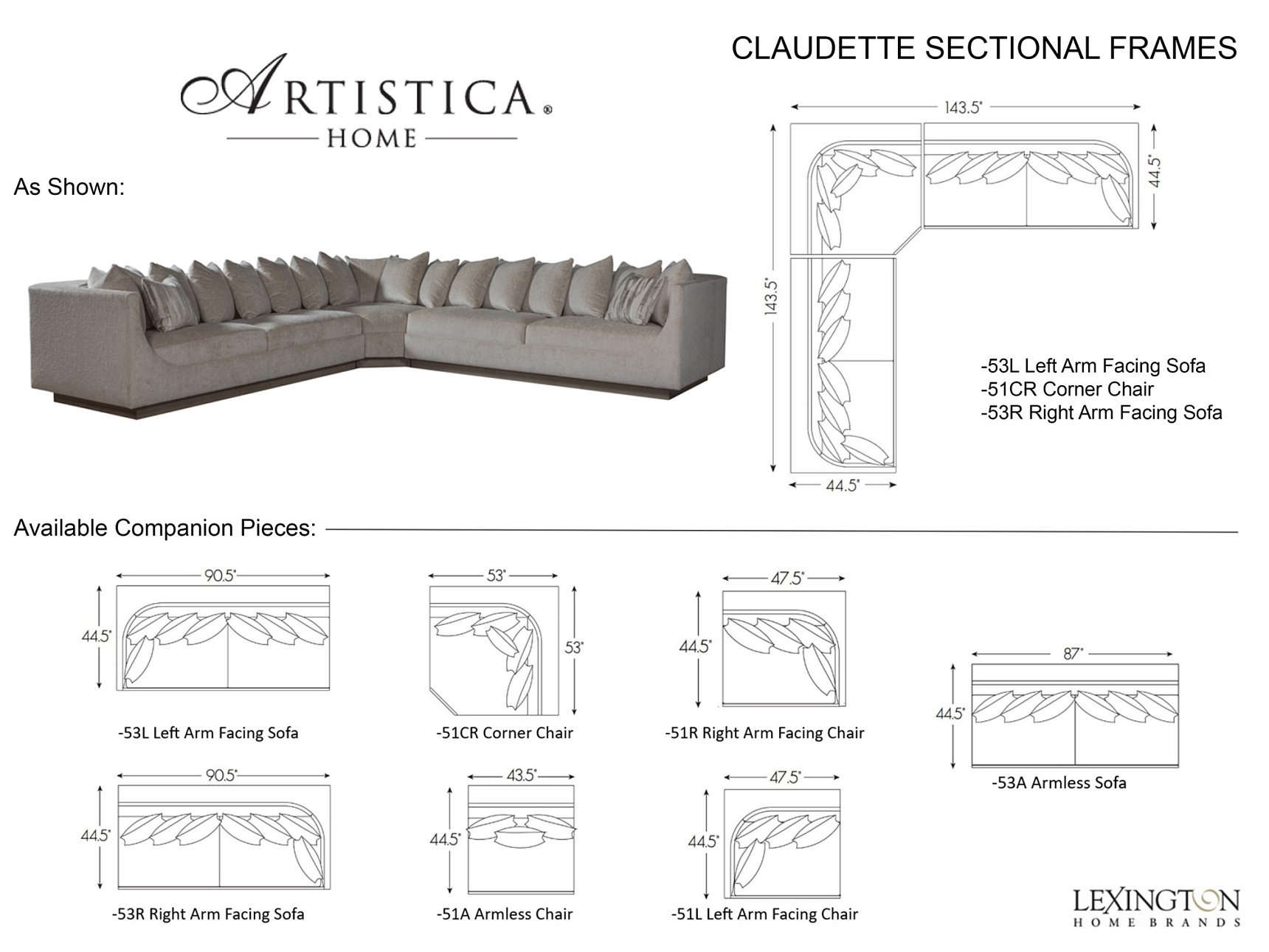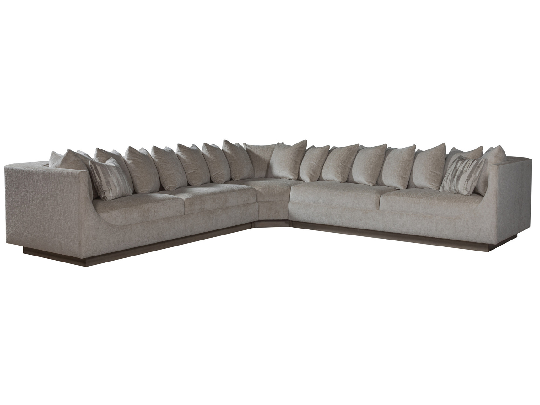 Модульный диван Claudette I из коллекции Artistica Upholstery от премиального американского бренда Artistica Home для Lexington. Потрясающая переходная форма, отличающаяся длинными плавными изгибами, которые охватывают широкое сиденье и сужаются кверху, создавая эффект укрытия, завершающегося изящными узкими подлокотниками. Эффектное утопленное основание и глубокая спинка придают этому роскошному и удобному дивану архитектурную выразительность. В эту конфигурацию входят девятнадцать подушек для спинки и три декоративные подушки. Основание может быть выполнено в любой обивочной ткани на ваш выбор. Благодаря модулям и составным частям, диван можно комбинировать на любой вкус.