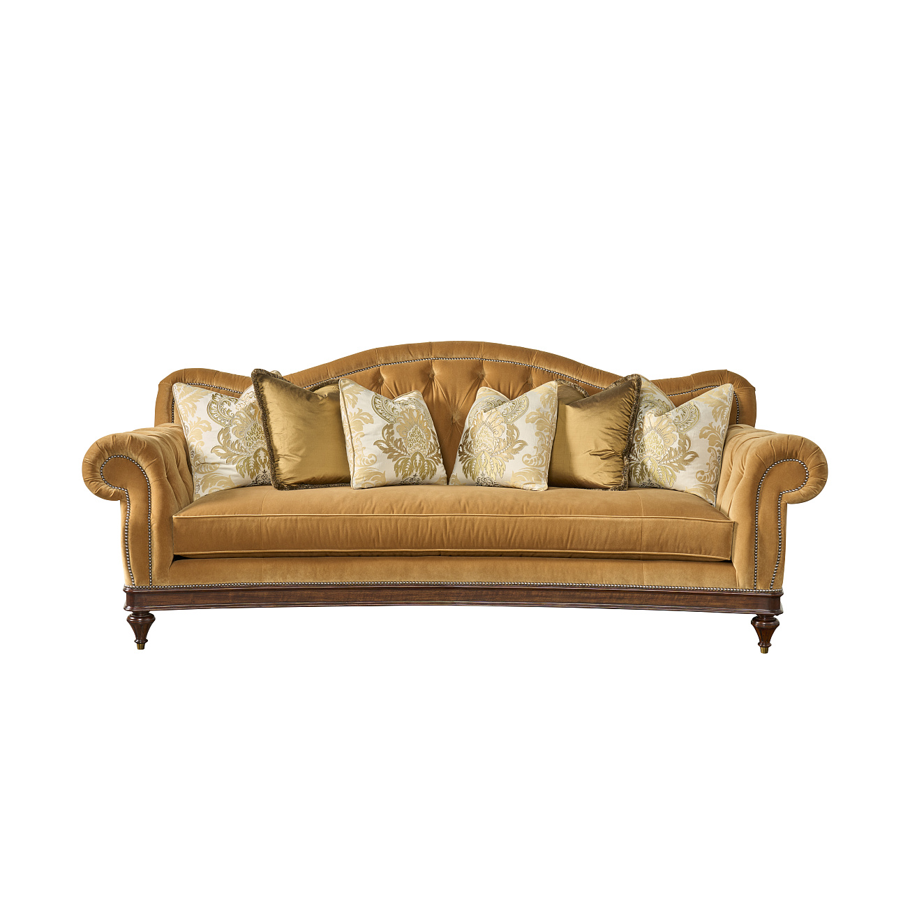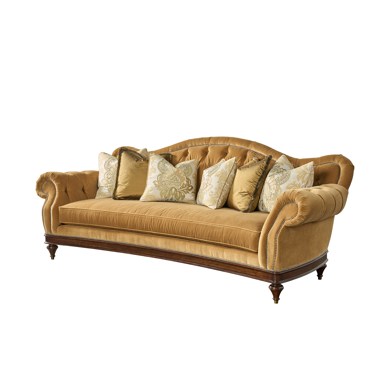 Диван Lancaster от американского премиального бренда Theodore Alexander изготавливается из дерева и обивается тканью. Спинка слегка изогнутая, с плавными линиями. Ножки выполнены из дерева и имеют утончённую форму с небольшим сужением книзу.
