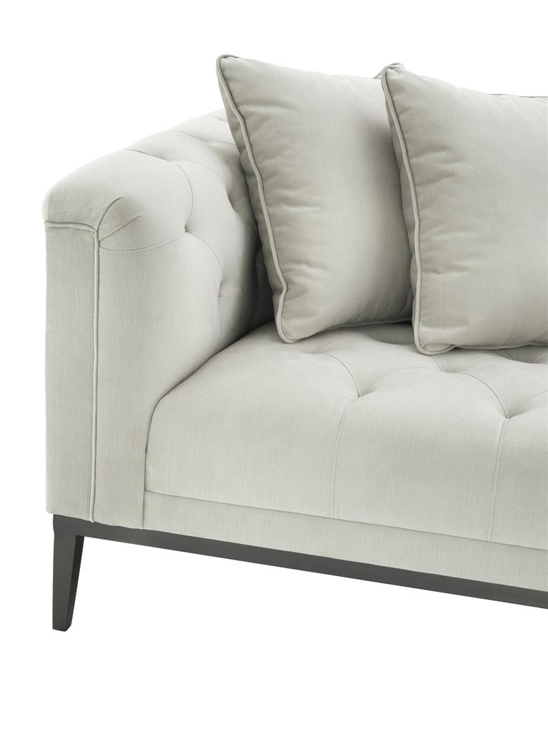 Диван Sofa Cesare от известного бренда Eichholtz. Диван светло-серого цвета на черных деревянных ножках. Обтяжка выполнена в технике “Капитоне”. Состав ткани: 100% полиэстер.