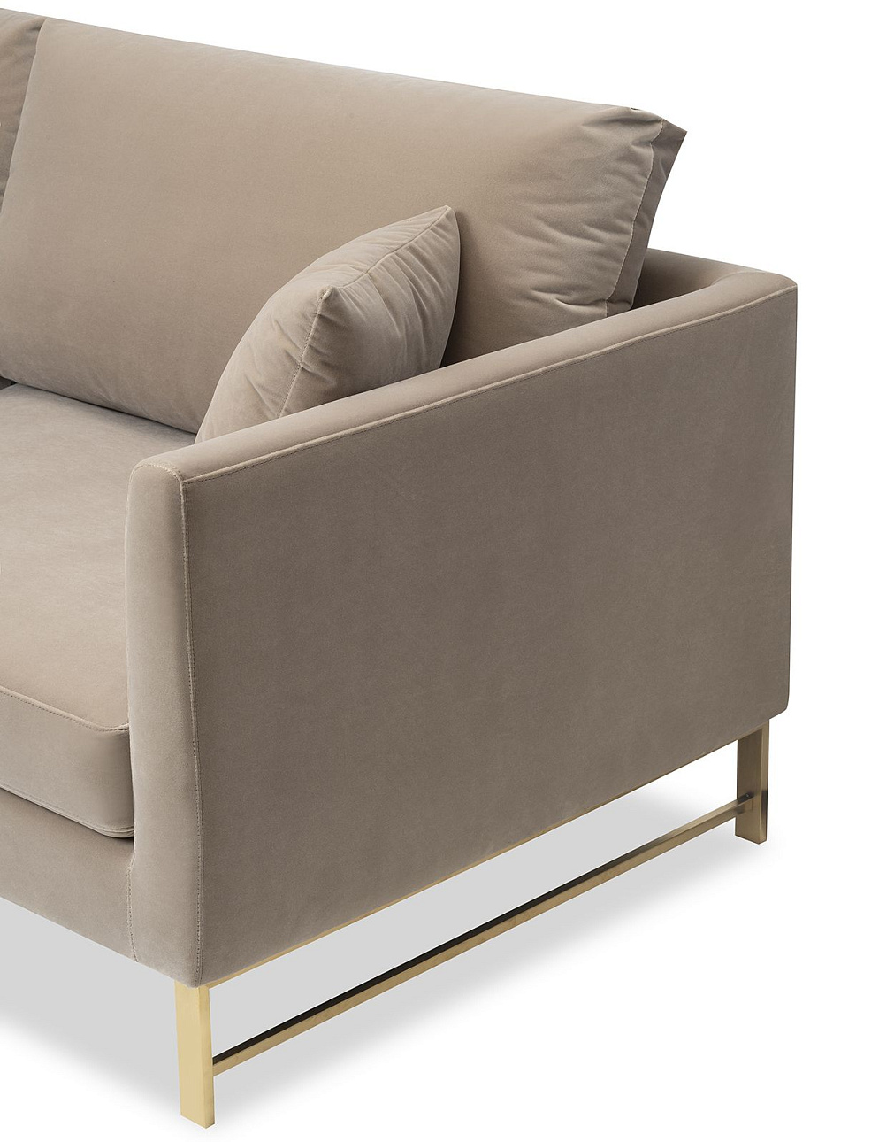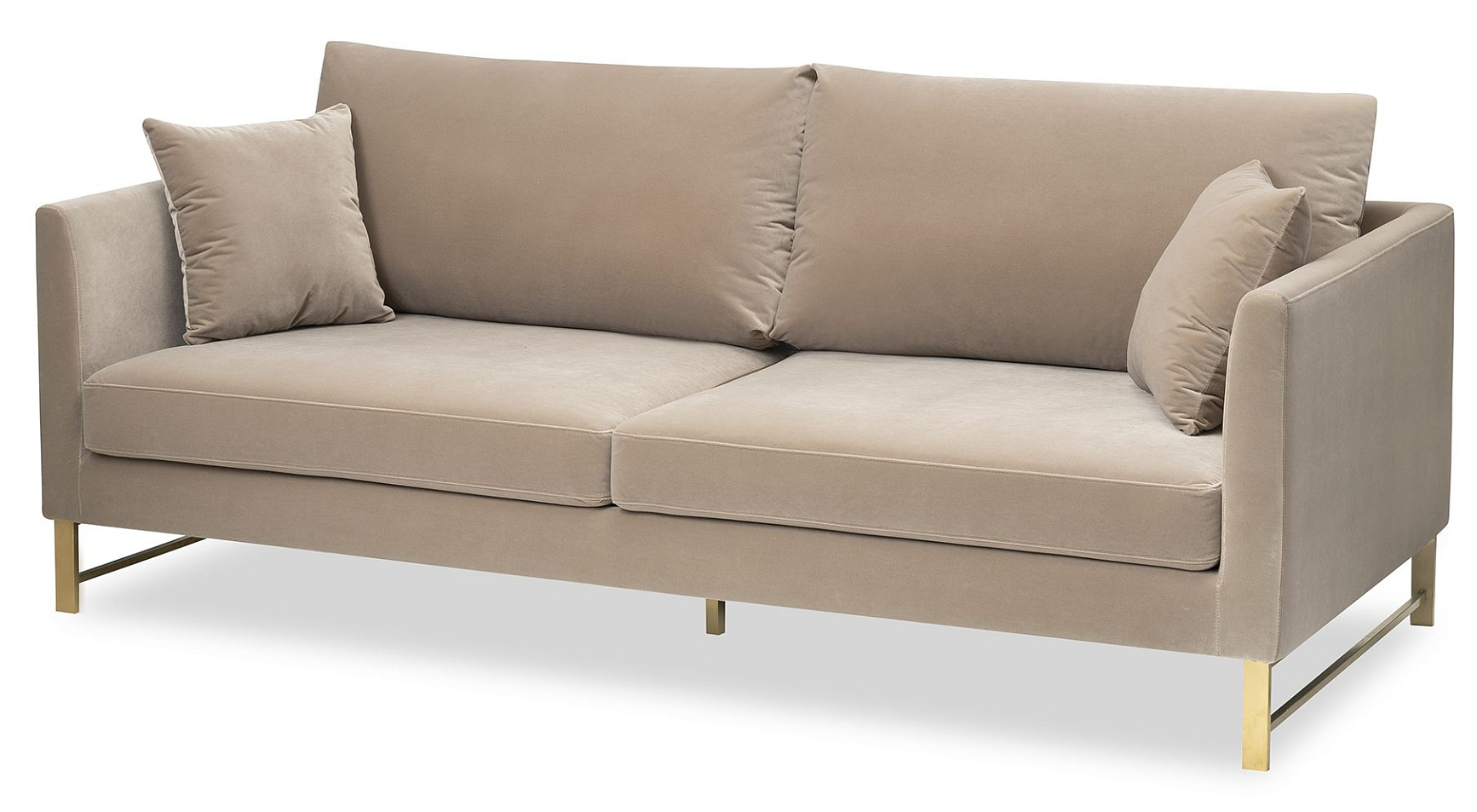 Диван VERO от премиального Английского бренда LIANG AND EIMIL. Трехместная модель с прямыми углами конструкции. Спинка и сиденье со съемными подушками. Ножки закреплены между собой попарно поперечным усилителем. Выполнены из шлифованной латуни. Обивочная ткань высшей категории - велюр оттенка Gainsborough Mink. Высота сиденья 48 см.