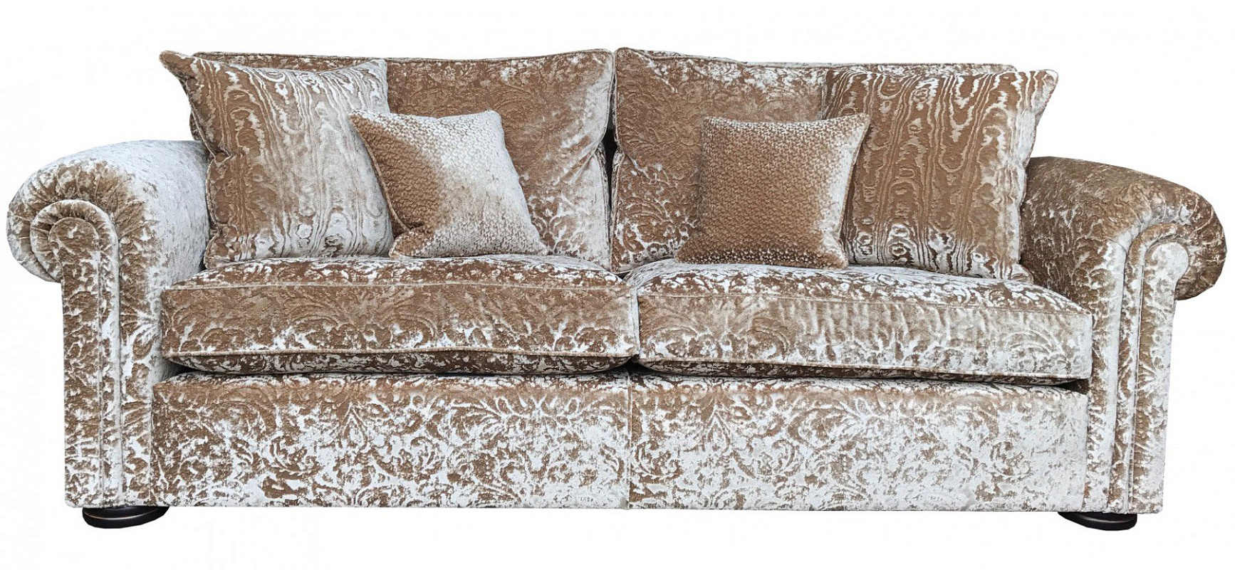 Каркас дивана выполнен из экологически чистой твердой породы дерева, подушки наполнены гипоаллергенным гусиным пухом, ножки выполнены из красного дерева.