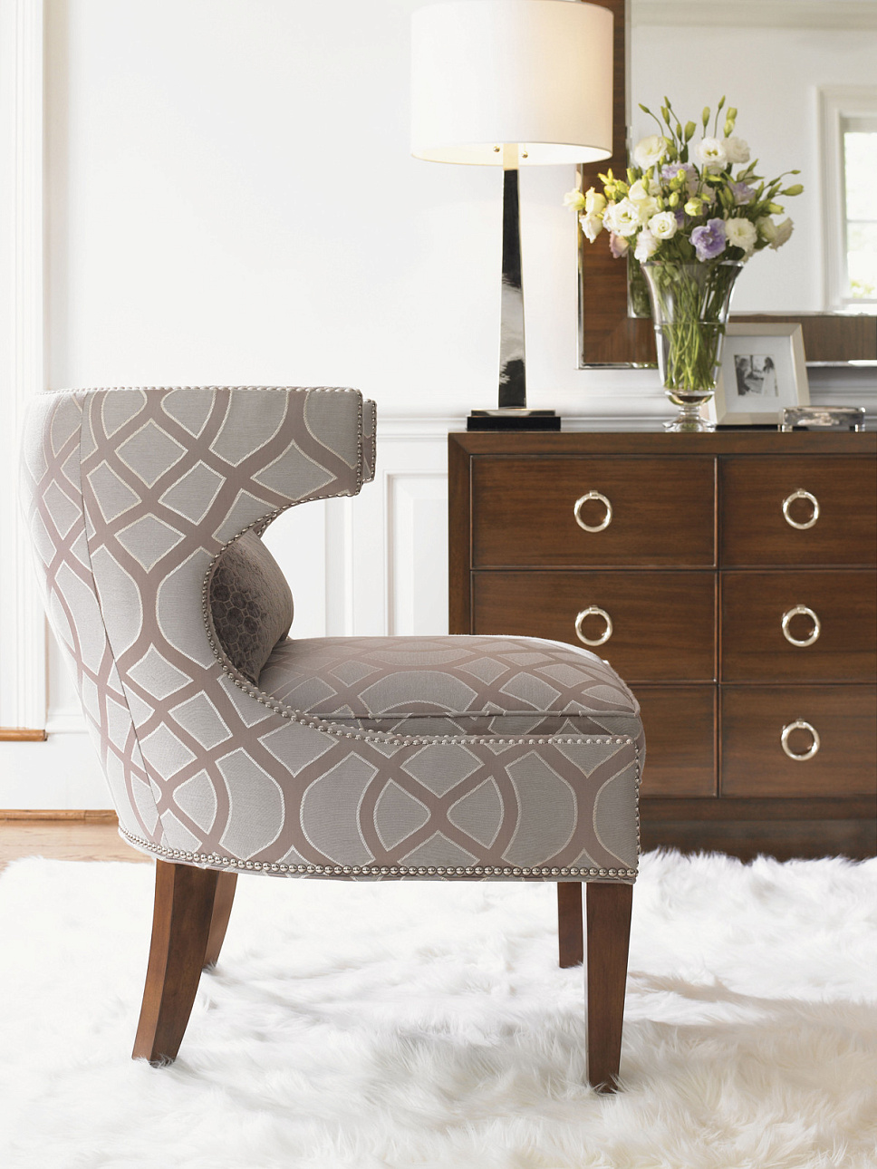 Роскошное кресло GRETA CHAIR от американского премиум бренда Lexington Акцентное кресло, формирующее настроение интерьера и приковывающее к себе внимание. Кресло может быть выполнено в текстильной обивке или в коже. Кресло производится в США под заказ. Настоящее Американское качество.