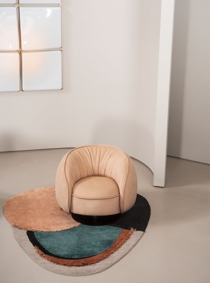 Кресло Marilyn от премиального итальянского бренда Baxter. Основание выполняется из металла, окрашенного в черный цвет. Для обивки применяется мягкая кожа. В качестве наполнителя используется пенополиуретан и пух. Доступно множество вариантов цвета обивки, представленной фабрикой. Модель с вращающимся основанием.