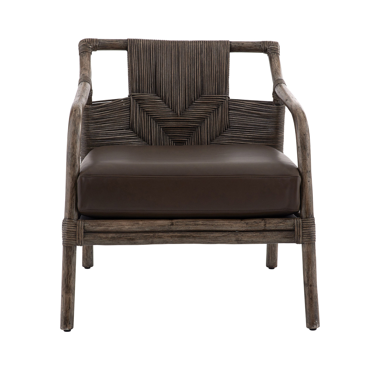 Кресло Newton от премиального американского бренда Arteriors изготавливается из натурального ротанга. Сидение обивается кожей.
