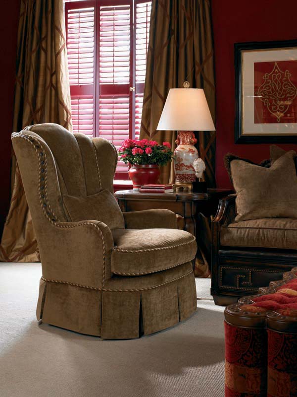 Кресло San Diego от премиального американского бренда Century Furniture. Коллекция Century Signature. Модель с обработкой со всех сторон, декорирована мебельными гвоздями. Чехол с юбкой. Подушка сиденья съемная. Спинка плотная, с мягким наполнителем. На выбор предлагается несколько категорий обивочных тканей, кожи, варианты наполнения подушки сиденья, декоративная обработка (мебельный кант, рант, гвозди).
