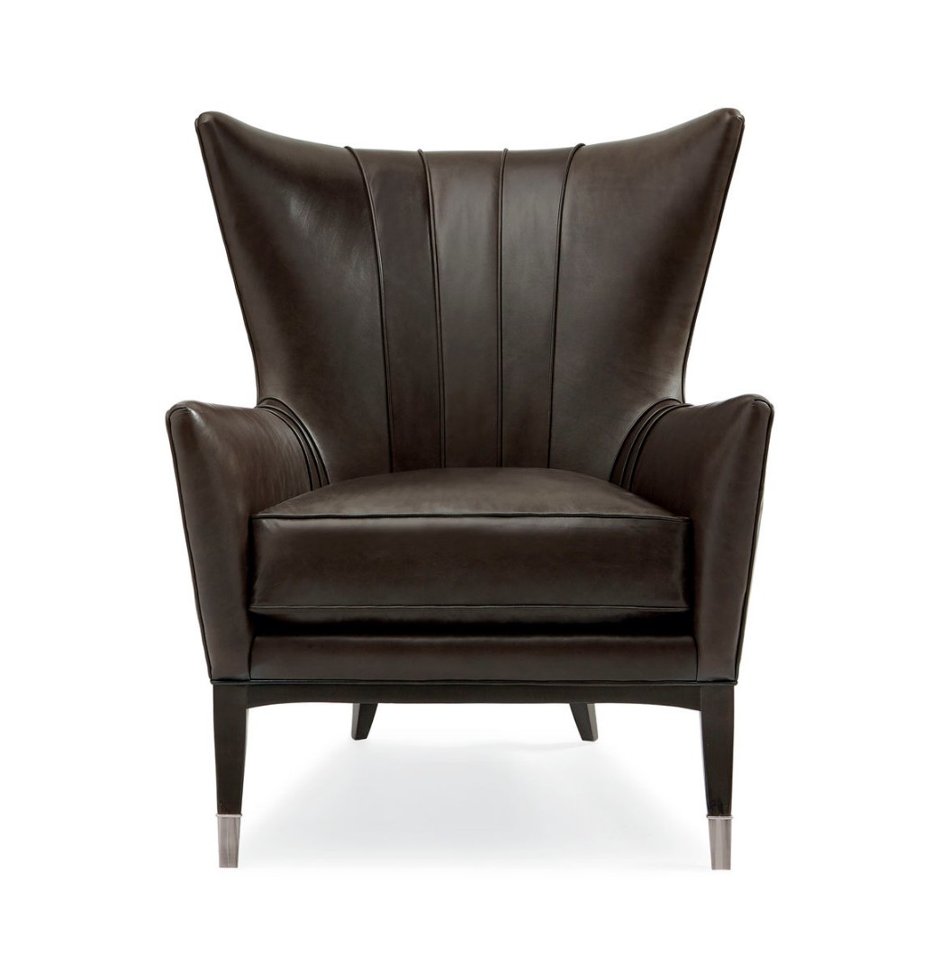 Кресло So Welt Done от премиального американского бренда Caracole. В этом стуле стиль и комфорт сочетаются в идеальной пропорции: мягкая кожа, вертикальные детали создают современный образ, а основание Midnight с металлическими деталями из Lightly Brushed Chrome придают надежность и изысканность.