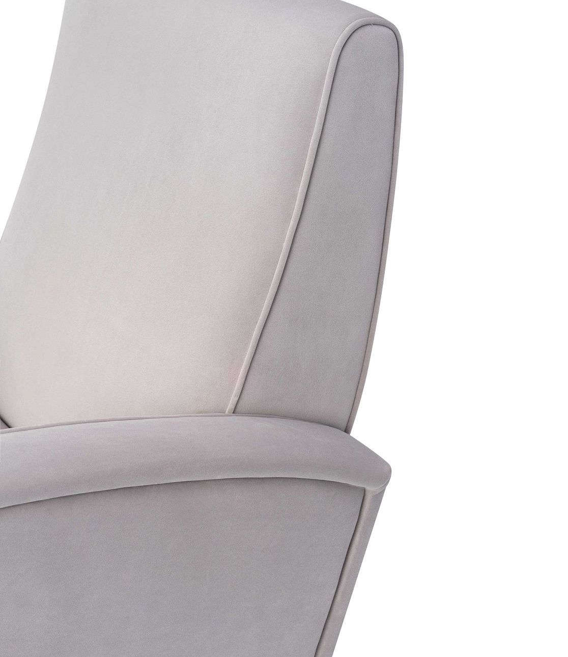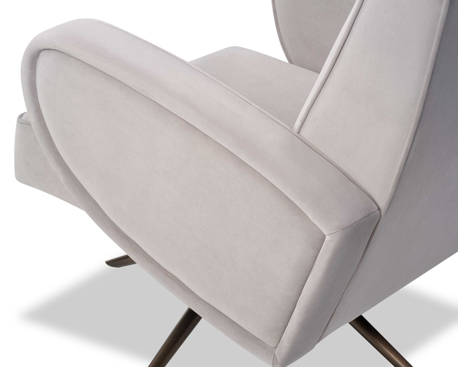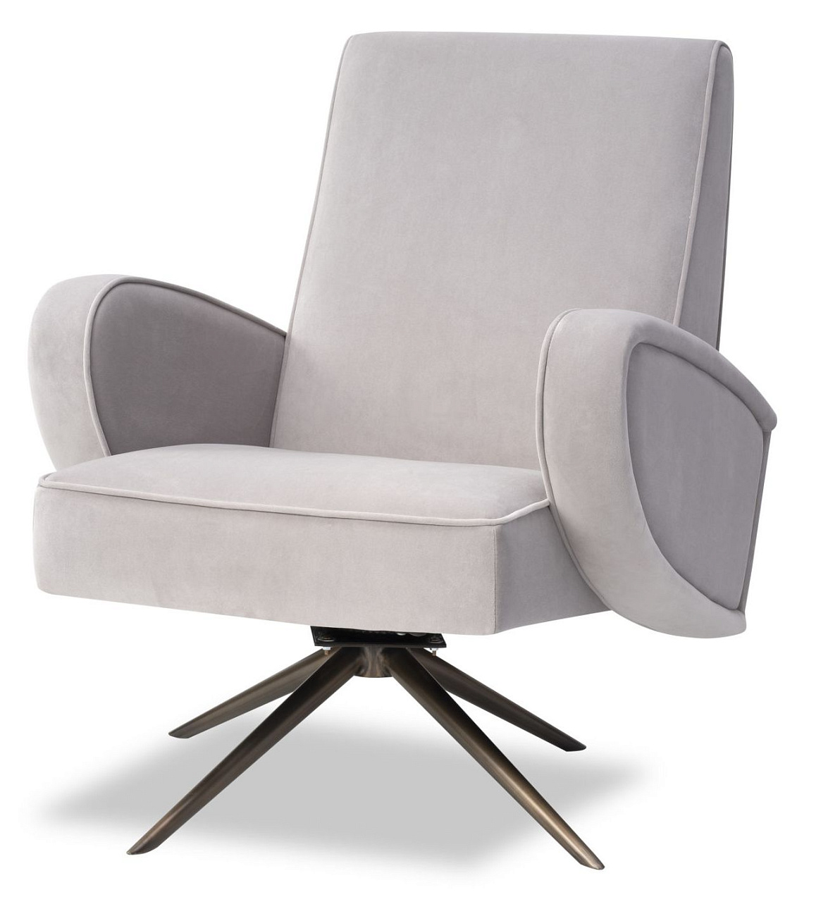 Кресло STRATA от премиального Английского бренда LIANG AND EIMIL. Модель на стальном четырехлучье оттенка античного золота, с вращающимся на 360 градусов вокруг своей оси механизмом. Мягкое, уютное кресло с высокой спинкой и массивными подлокотниками. Обтянуто велюром Kaster Light Grey. Высота сиденья 45 см, высота подлокотников 64 см.