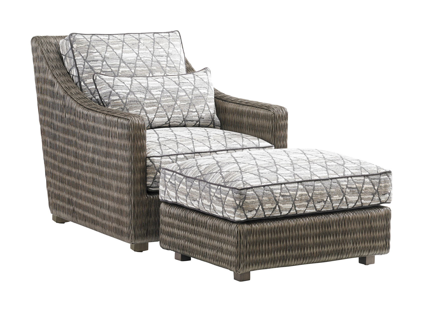 Оттоманка Hayes от американского премиального бренда Tommy Bahama для Lexington. Натуральная текстура и дымчато-серая отделка — отличное сочетание для тканевой обивки подушки для сиденья. К этой оттоманке подойдет такой же диван или стационарное кресло.