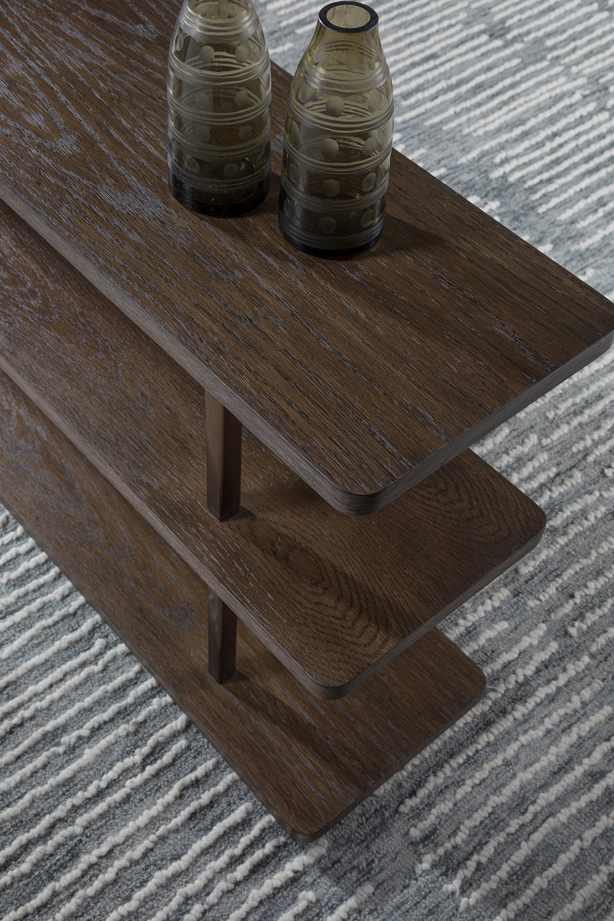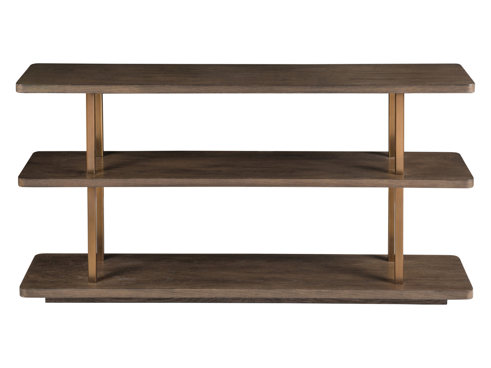 Столик Andare из одноименной коллекции от премиального американского бренда Artistica Home для Lexington с тремя полками из белого дуба на трубчатых стойках из цельной латуни.