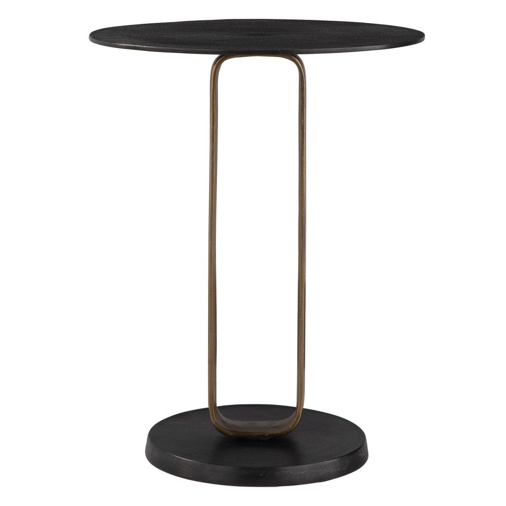 Столик Aperture от премиального американского бренда Uttermost. Корпус из литого алюминия с латунной отделкой, подчеркнутой элегантным черным основанием и столешницей.