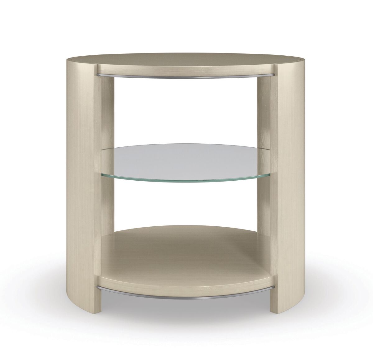 Столик Da Vita от премиального американского бренда Caracole изготавливается из дерева Кото и березы в отделке дымчатый металл. Имеется стеклянная полочка.