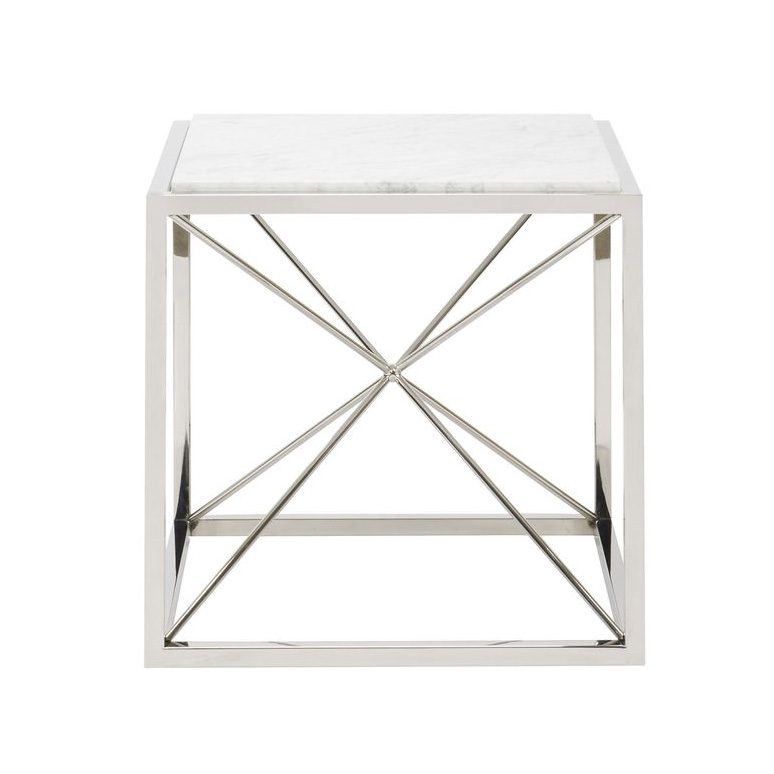 Столик Drumlins от американского премиального бренда Vanguard Furniture. Основание изготавливается из металла. Столешница выполнена из камня белого цвета.