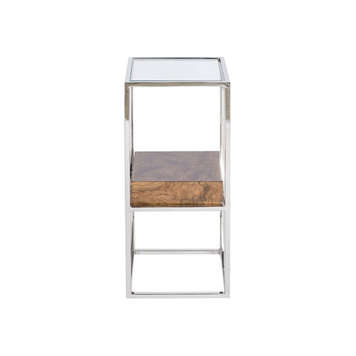 Столик Graham от американского премиального бренда Vanguard Furniture. Основание изготавливается из металла. Столешница выполнена из стекла, полочка из дерева.