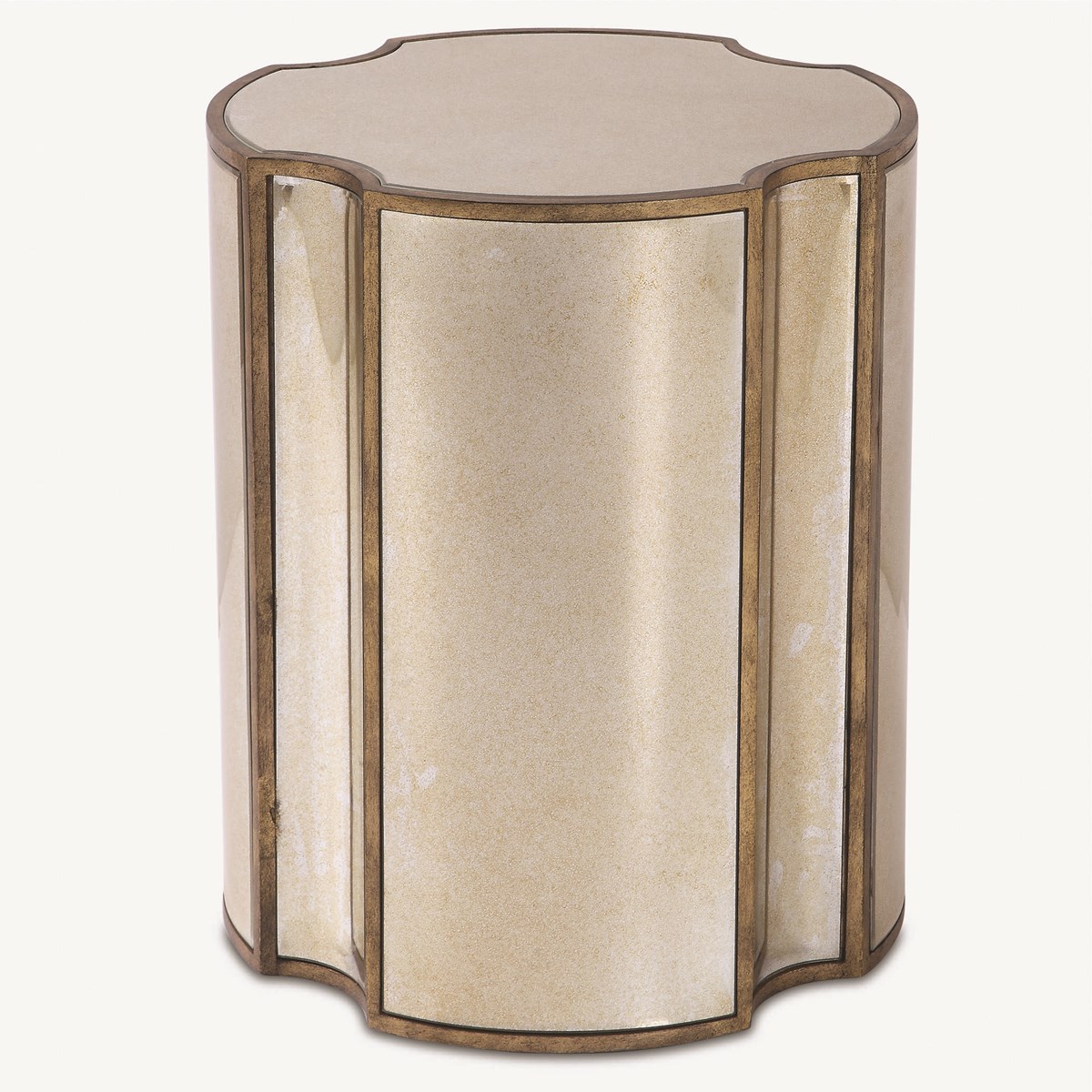 Столик Harol о премиального американского бренда Uttermost. Каждая грань окружена изогнутым состаренным зеркалом, подчеркнутым рамкой с отделкой под состаренную латунь.