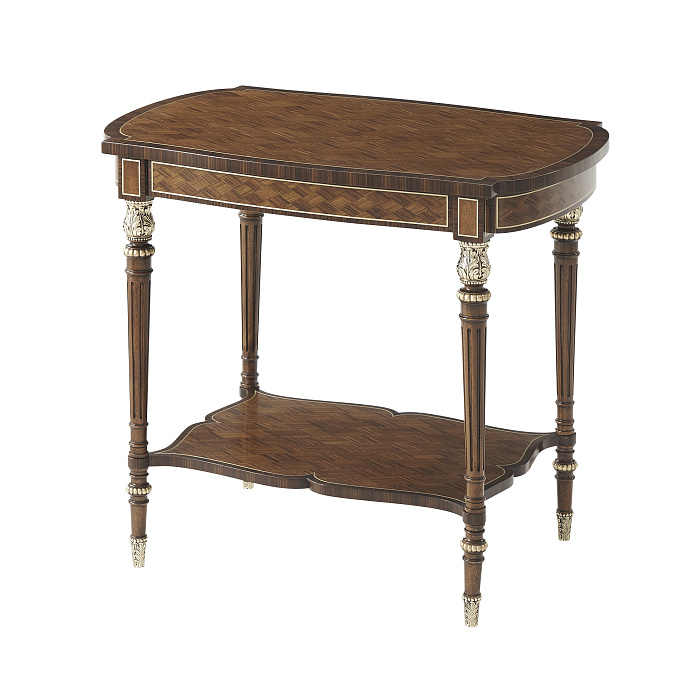 Столик Renaissance от премиального американского бренда Theodore Alexander выполнен из массива твердых пород дерева и мдф, декорирован шпоном из ценных пород дерева, отделка выполнена из латуни.