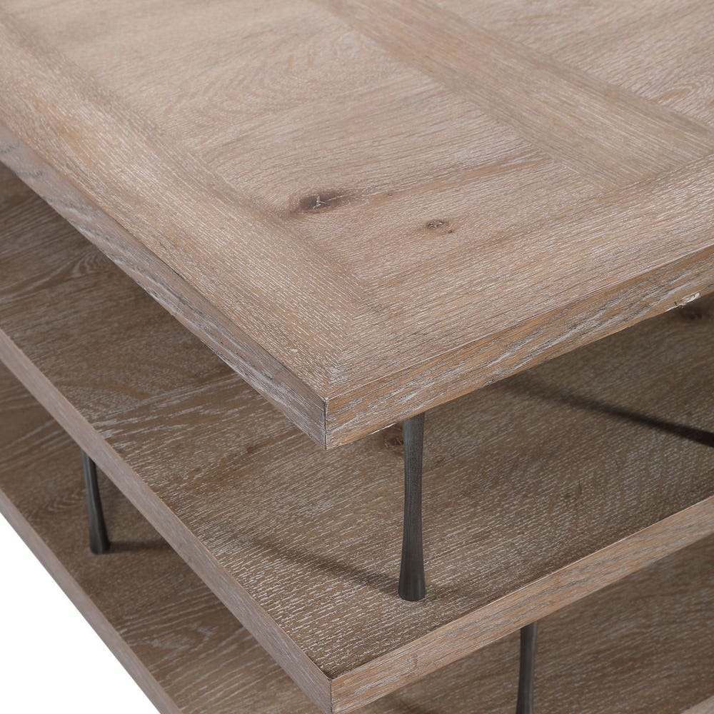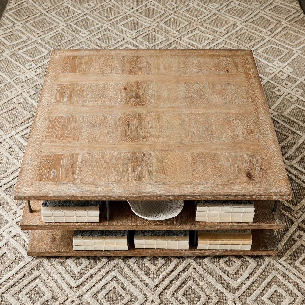 Столик Cavalcade от премиального американского бренда Uttermost. Великолепный столик из матового шпона американского белого дуба с тонировкой цвета «терракотовый». На трехъярусном столике достаточно места, чтобы разместить любимую коллекцию, закуски или напитки. Нижний ярус идеально подходит для хранения книг, коробок или подушек. Стол с заостренными колоннами и ножками со стальной отделкой отличается высокой функциональностью и стильным дизайном.