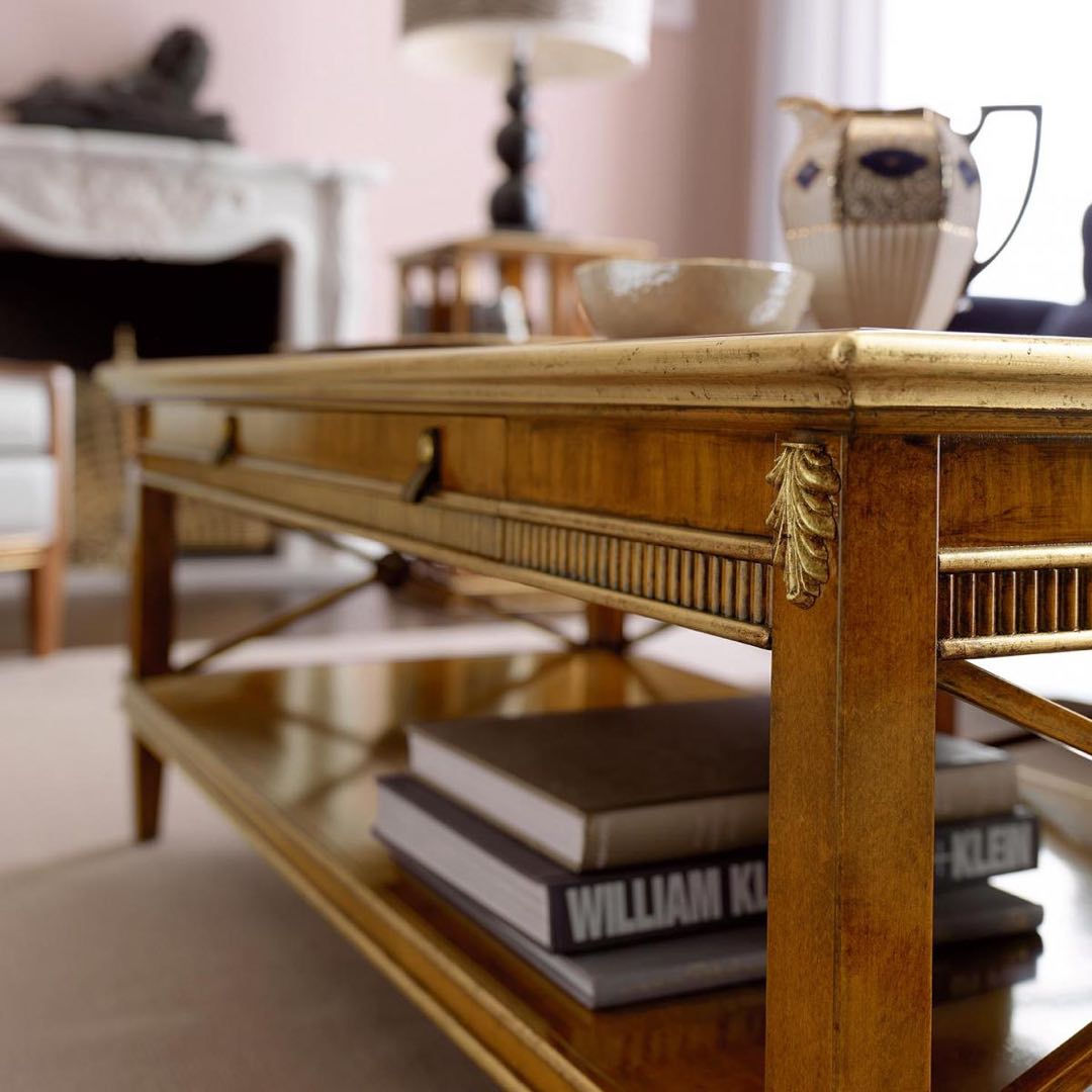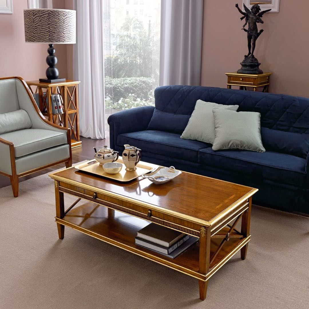 Столик от премиального итальянского бренда Tosato изготовлен из шпона вишни и массива дерева. Стол с ящиком доступен в различной отделке представленной фабрикой. Вариант с интарсией на столешнице.