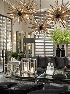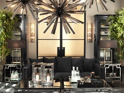 Журнальный столик Coffee Table Palmer от известного бренда Eichholtz. Дымчатая стеклянная столешница установлена на оригинальный металлический каркас.