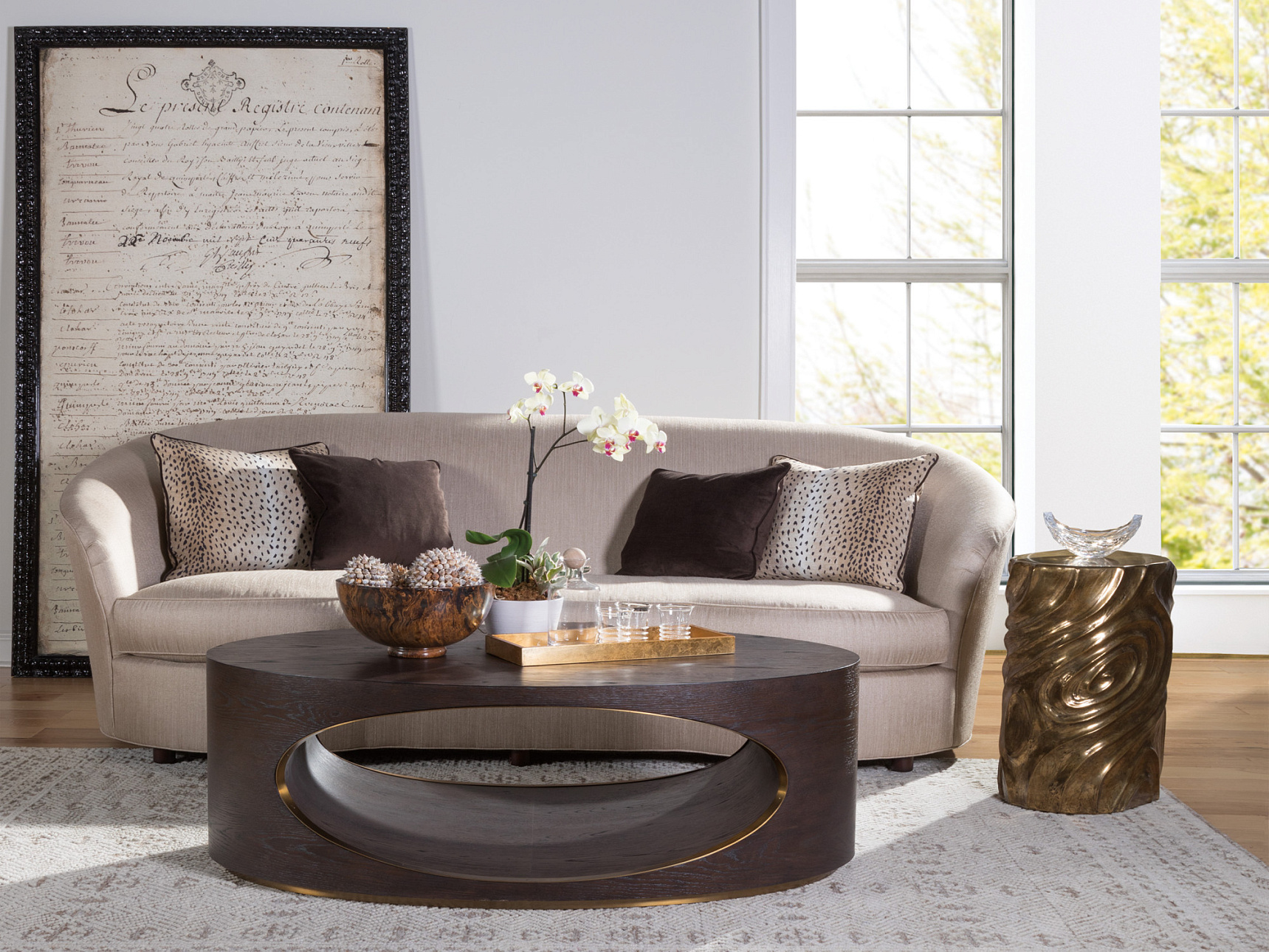 Столик Verbatim из одноименной коллекции от премиального американского бренда Artistica Home для Lexington. Модель из шпона белого дуба и ценных пород древесины в коричневой отделке с эффектом щёточной обработки и патинирования. Центральная вставка и цоколь в отделке состаренная латунь.