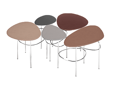 Коктейльный столик Viae 5 от премиального итальянского бренда Frag. Дизайнер Analogia Project. Коллекция представлена двумя версиями: с 3 и 5 асимметричными фрагментами столешницы. Элементы столешницы обтянуты седельной кожей, на выбор предлагается стандартная, монохромная или цветная схема оформления. Дизайн был задуман по мотивам древнеримских дорог, вымощенных булыжниками. Корпус стальной в виде гнутого прута. Можно подобрать цвет кожи для элементов столешницы. Цвет основания можно выбрать на заказ.