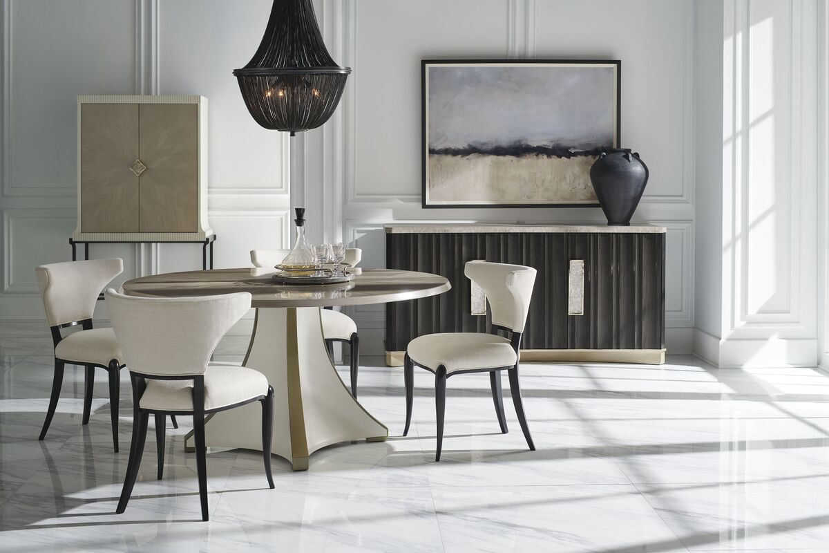 Стол Great Expectations от премиального американского бренда Caracole изготавливается из дерева Кото, азиатской древесины твердых пород и смолы в отделках: лунный камень, жемчужно-белый и золотой.