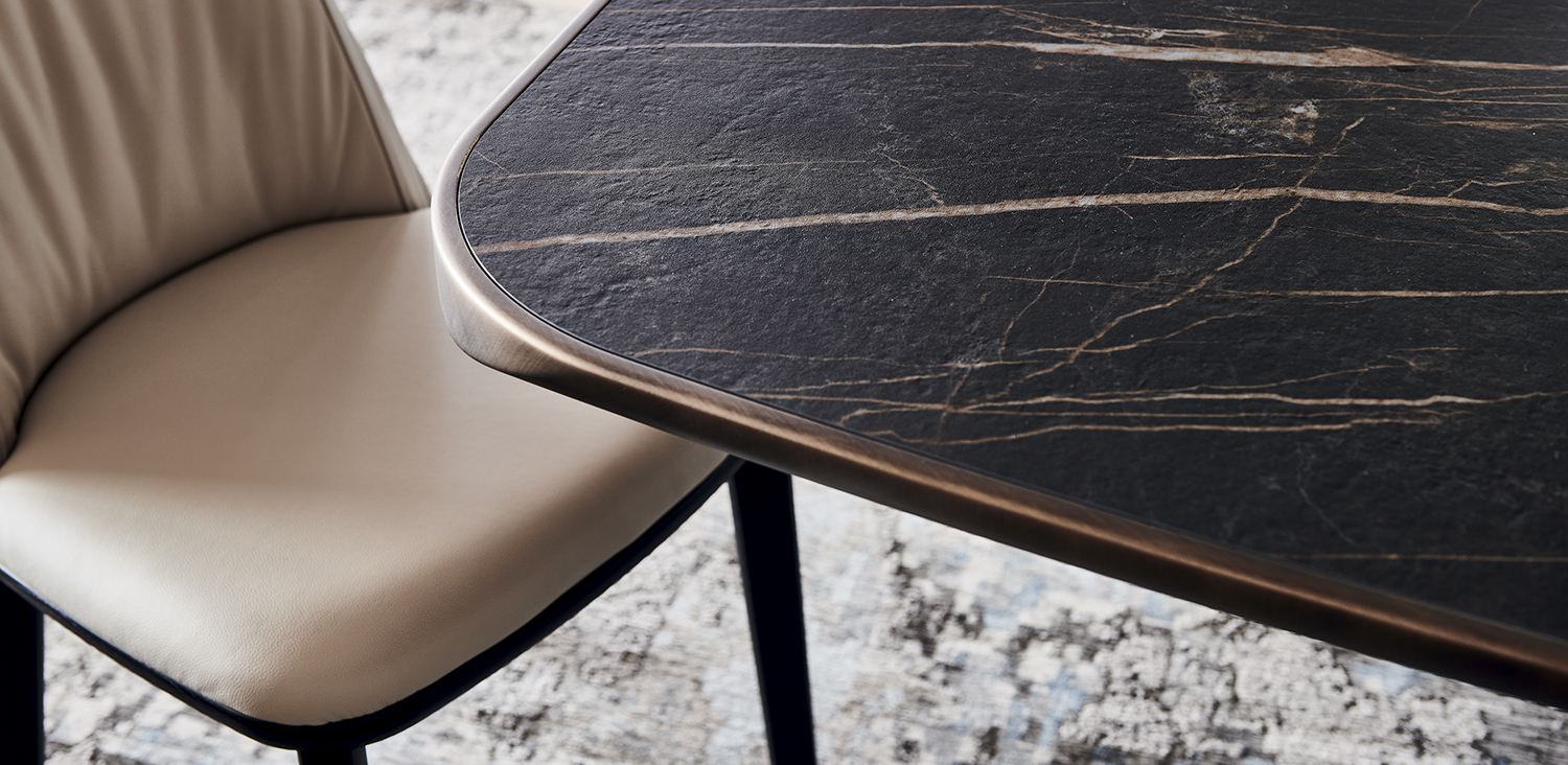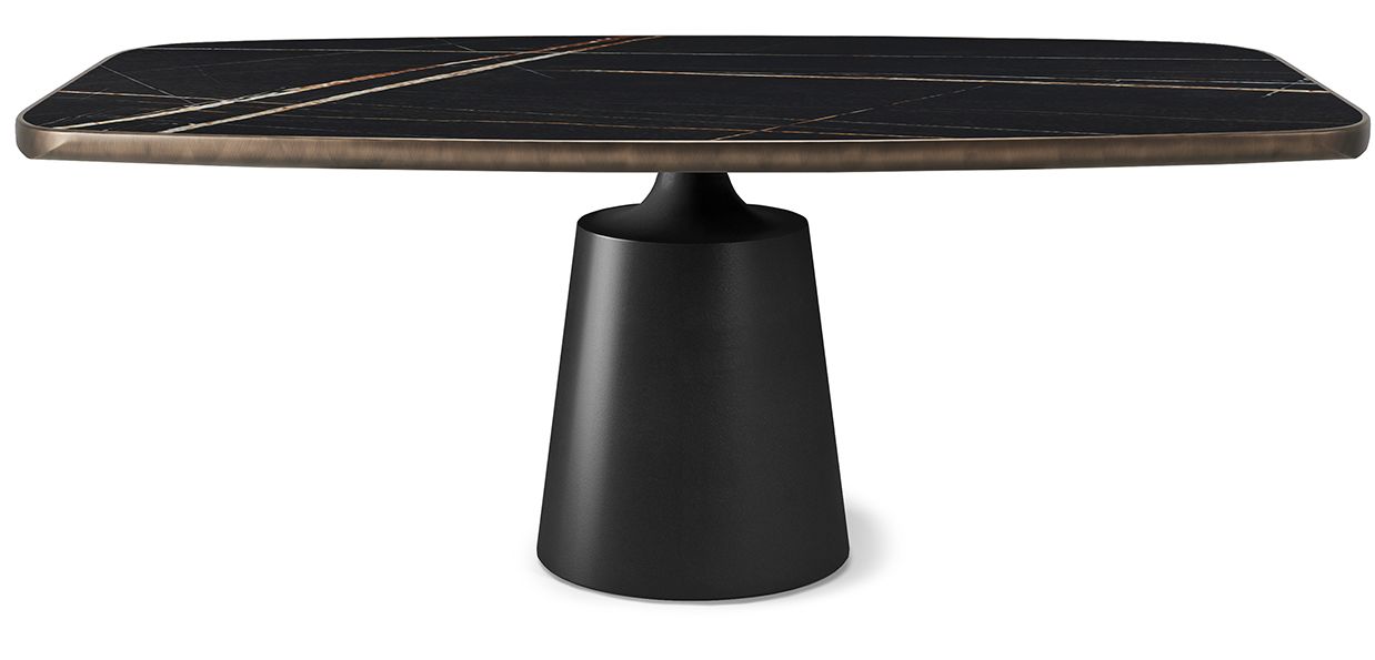 Стол YODA KERAMIK PREMIUM от премиального итальянского бренда CATTELAN ITALIA. Дизайнер Paolo Cattelan. Стол с базой из стали, окрашенной в гофрированный графитовый (GFM69), белый (GFM71), черный (GFM73) цвет или из сатинированного титана (11). Топ из керамики цветов Calacatta (KM01), Alabastro (KM02), Ardesia (KM04), Golden Calacatta opaco (KM05), Golden Calacatta lucido (KM06), Portoro opaco (KM07), Portoro lucido (KM08), Sahara Noir lucido (KM09), Emperador (KM10), Makalu (KM11), Breccia (KM12) или Arenal (KM13) с нижним закругленным профилем, окрашенным в брашированный бронзовый или брашированный серый цвет. Предназначен на 8 гостей.