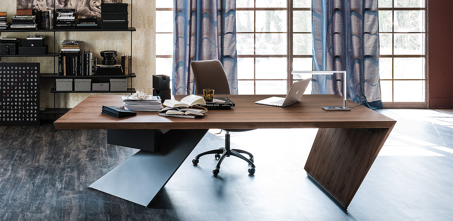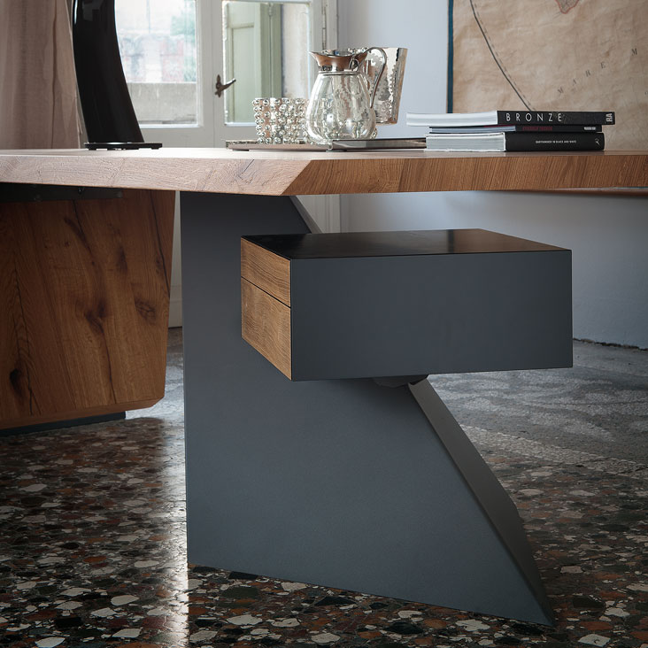 Стол NASDAQ от премиального итальянского бренда CATTELAN ITALIA. Дизайнер Paolo Cattelan. Письменный стол с тумбой из ореха Canaletto (NC), состаренного дуба Heritage (HR) или вяза с открытыми порами, окрашенного в матовый черный (OLM73). Ножка из стали, окрашенной в гофрированный графит (GFM69). В версии 215x100 тумба может быть закреплена с обоих сторон стола, в версии 260x120 только с короткой стороны.