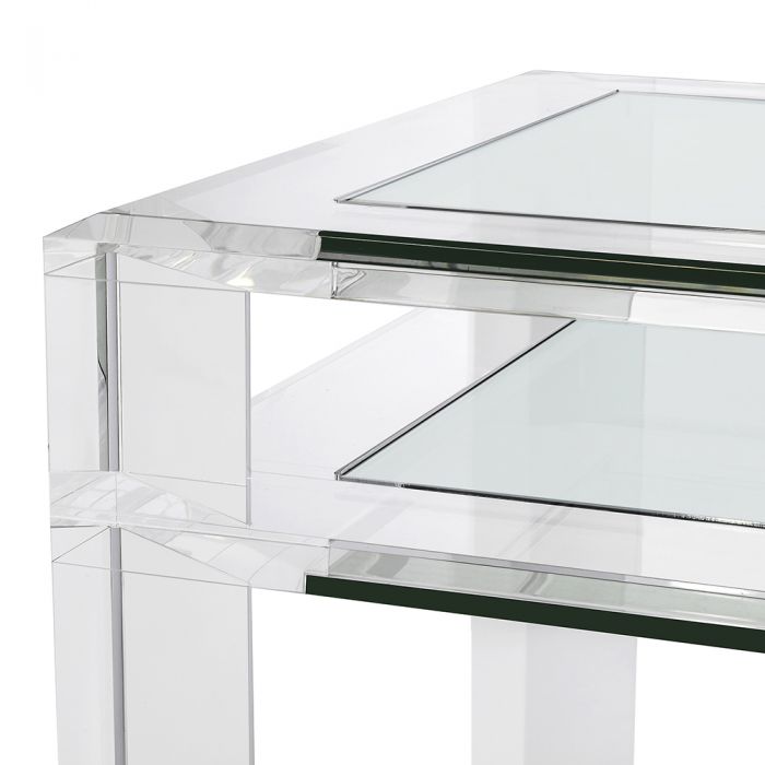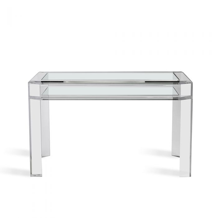 Письменный стол Surrey от премиального американского бренда Interlude Home изготавливается из прозрачного акрила. Столешница и полочка выполняются из стекла.